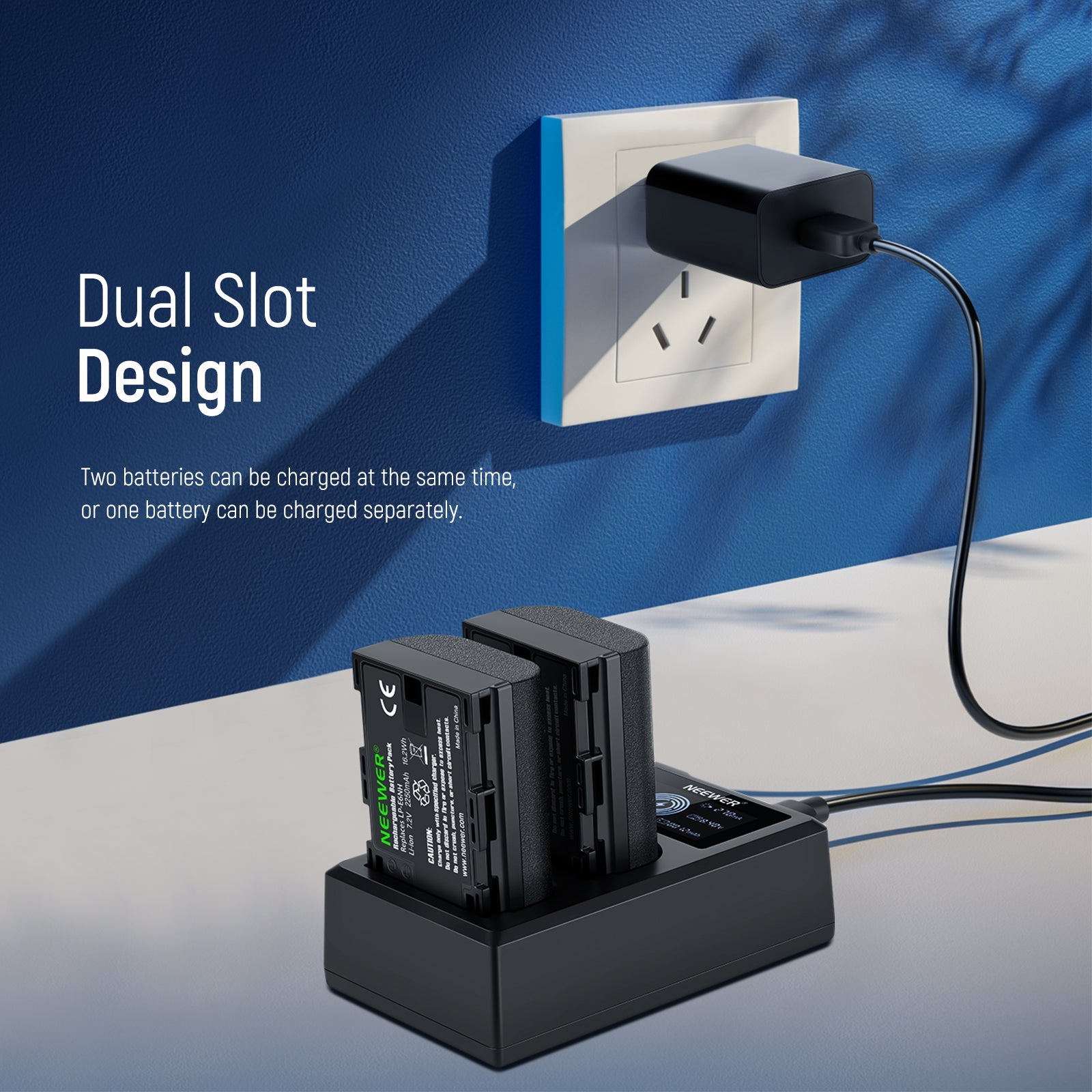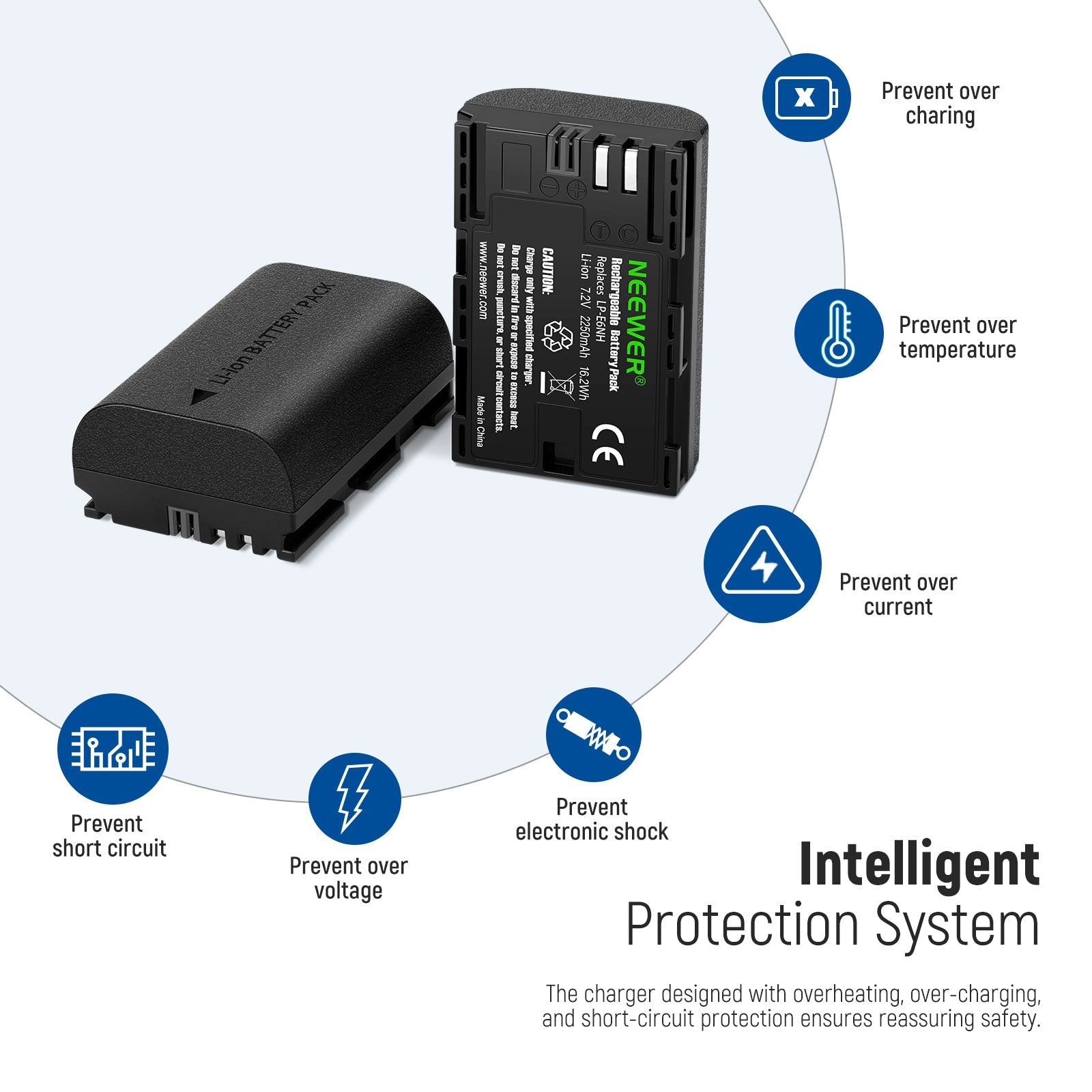 NEEWER 2-Pack LP-E6NH 2250mAh R6 II Canon Replacement Batteries Charger Set