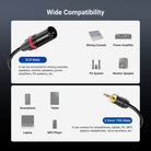 - Wide Compatibility- Use the xlr to aux cable with mixers, speakers, studio monitors, amplifiers, PA systems, and more, plus devices with a 3.5mm audio output: smartphones, tablets, PCs, MP3 players, headphones, voice recorders