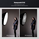 - Customizable Honeycomb Grid & Diffusers- Using the honeycomb grid can make the light shape more confined and directional, allowing the beam angle to be concentrated at 45°, which gives photographers a dramatic and expressive light effect to define their model's facial structure. The 2 pieces of high-quality diffusers can be freely combined in use