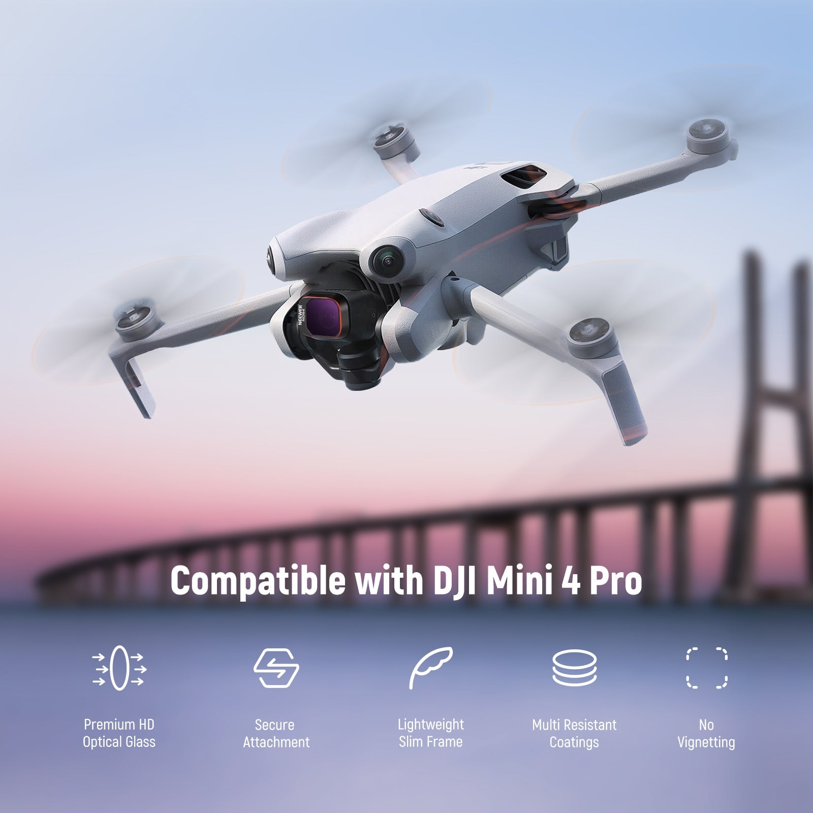 • Dedicated to Mini 4 Pro- Introducing the latest must-have ND & CPL filter set, compatible with DJI Mini 4 Pro.?This NEEWER filter kit boasts top?notch HD glass?that ensure crystal?clear imaging during aerial shooting.?It's a game changer for drone enthusiasts looking to optimize shutter speeds, minimize glare, enrich colors, and achieve impeccable exposure in varying weather conditions