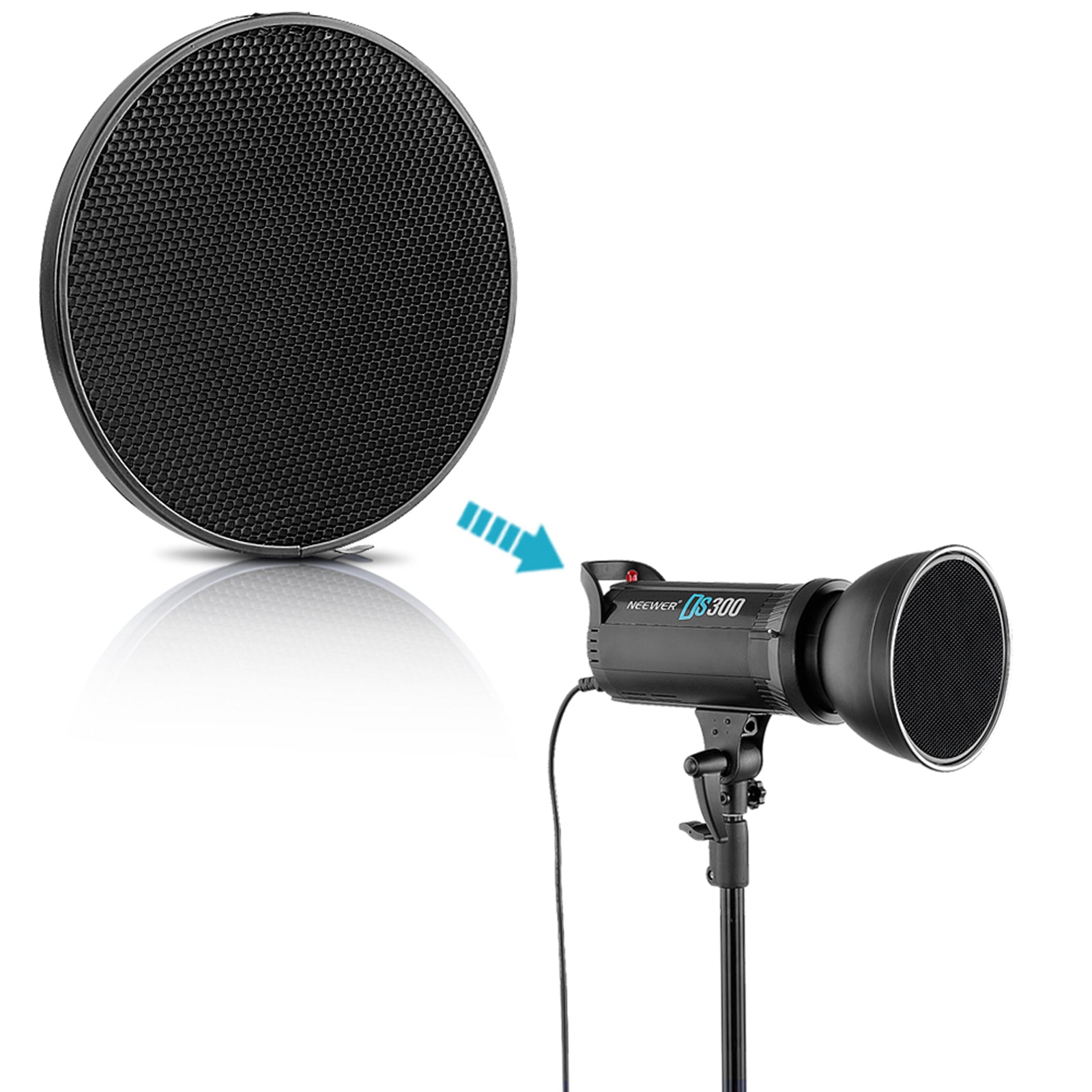 • 7" standard reflector with 10 30 50 degrees honeycomb grid for Bowens mount studio light strobe.