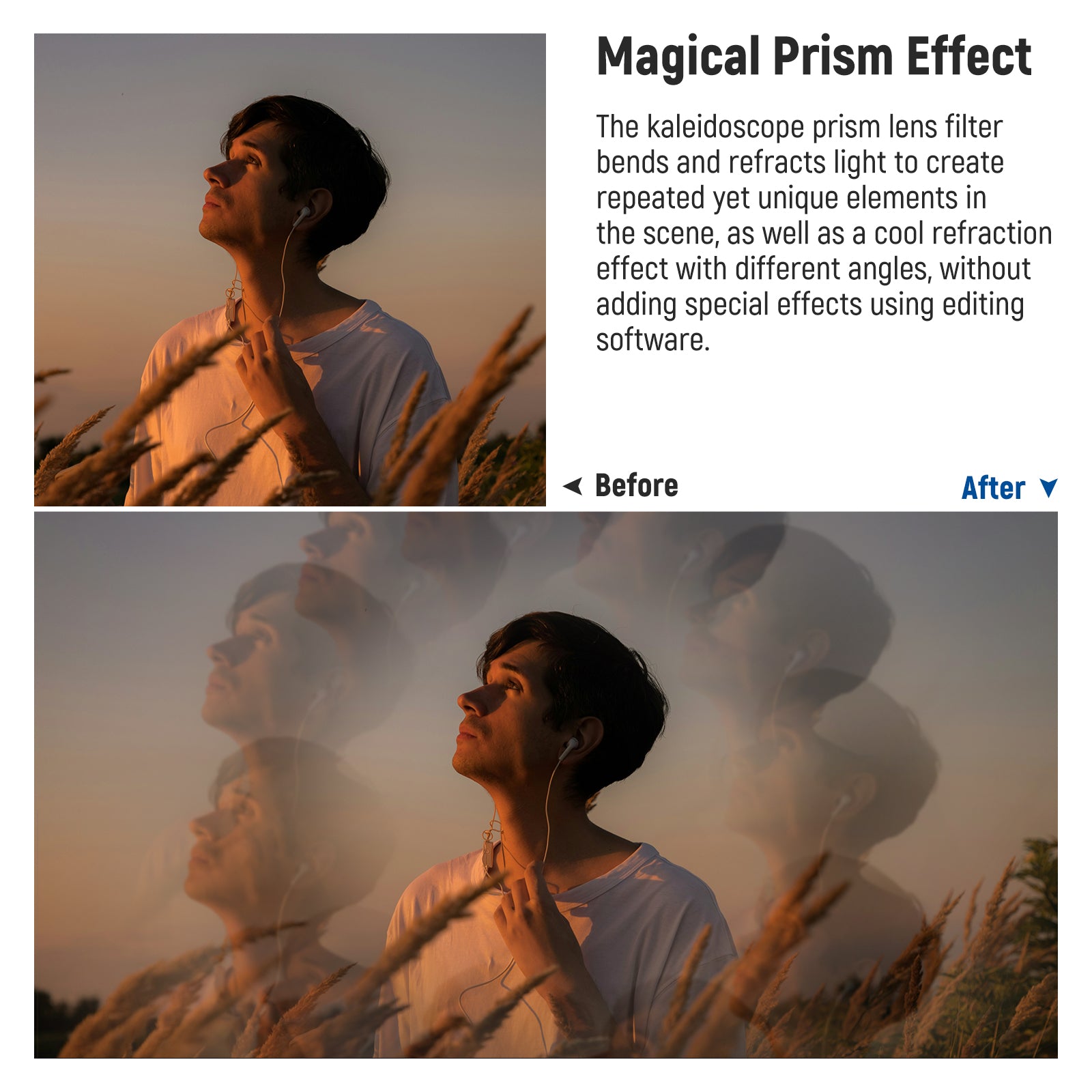 - Artistic and Imaginative Visual Effects- NEEWER 77mm handheld kaleidoscope prism lens filter bends and refracts light to create repeated yet unique elements in the scene, as well as a magical refraction effect with different angles, without using editing software to add special effects. Perfect for landscape photography, portrait shooting, abstract art creations, and so on