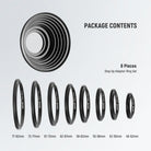 NEEWER 8 Pieces Anodized Aluminum Step-up Adapter Ring Set