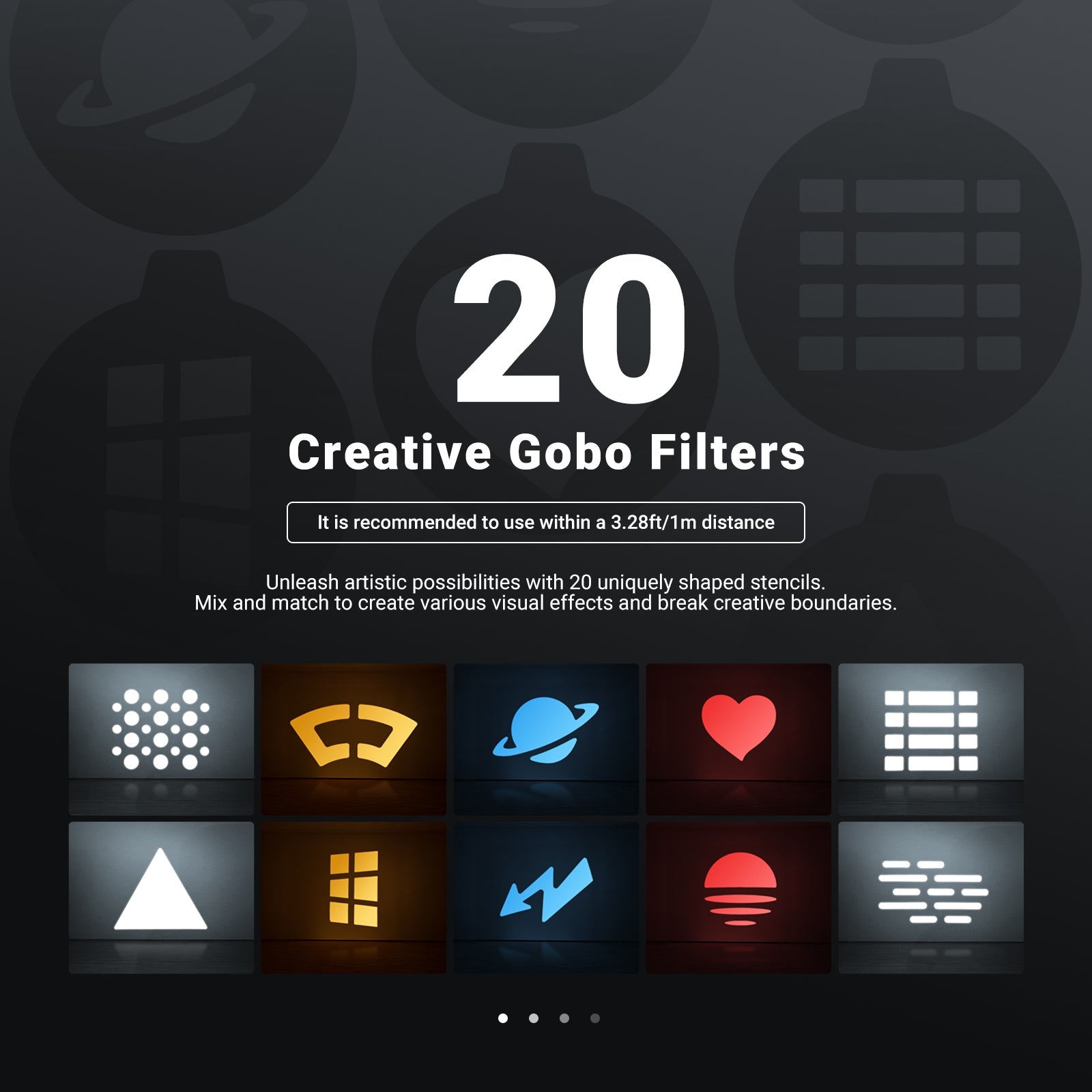 • Creative Production- The RGB light offers 4 colors and 20 gobo filters, dimmable from 1-100% for various moods, with CRI95+ for accurate color. Background or soft key lighting equipment kit for studio photography, photoshoot, wedding photos, video filming, etc.