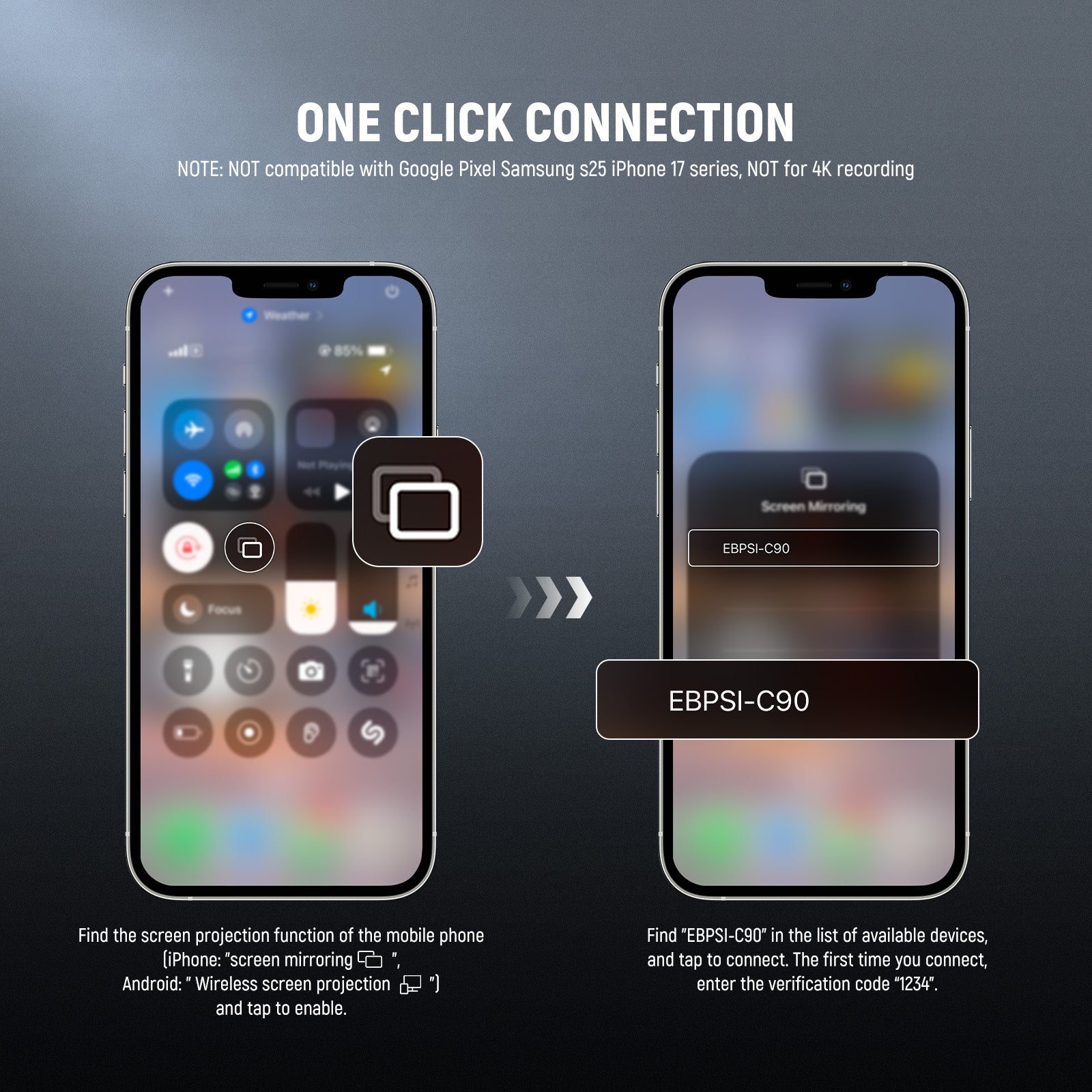 - Quick Magnetic Attachment- Magnetically attach the mini back camera mirror monitor to compatible with MagSafe smartphones or phones in magnetic cases. Compatible with iPhone 16 15 14 13 Pro Max, etc., as cell phone photography and vlog filming accessories. For nonmagnetic phones, use the magnetic ring. NOTE: NOT compatible with iPhone 17 series and Google Samsung s25 Android, NOT for 4K recording