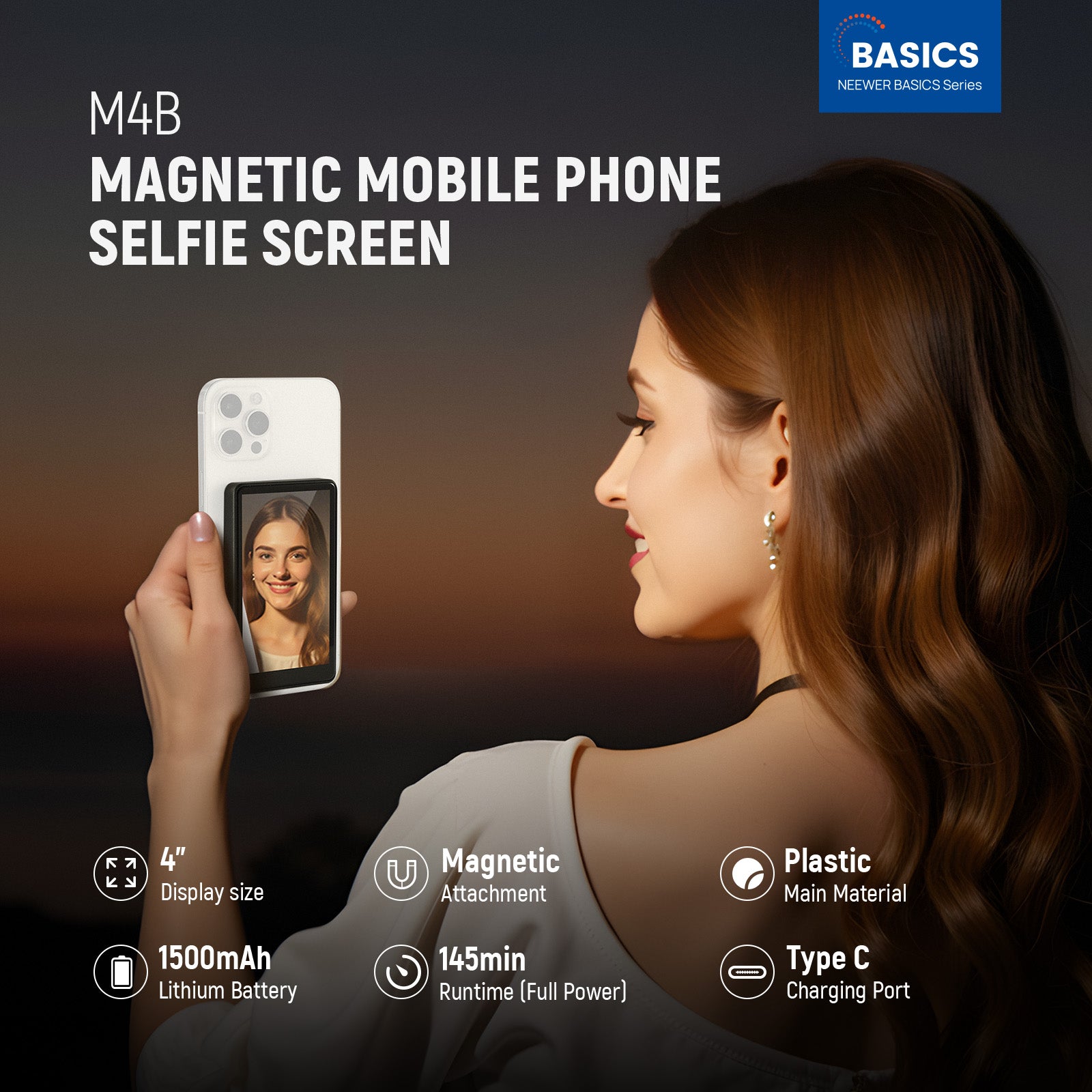 - Introducing NEEWER BASICS- Simple and practical, NEEWER BASICS is an economical product line that focuses on essential functions and designs, without unnecessary extras and materials. The M4B is a magnetic phone selfie monitor screen to improve selfie & video quality by enabling the use of the rear camera for front facing shots, easy to check framing for satisfying results