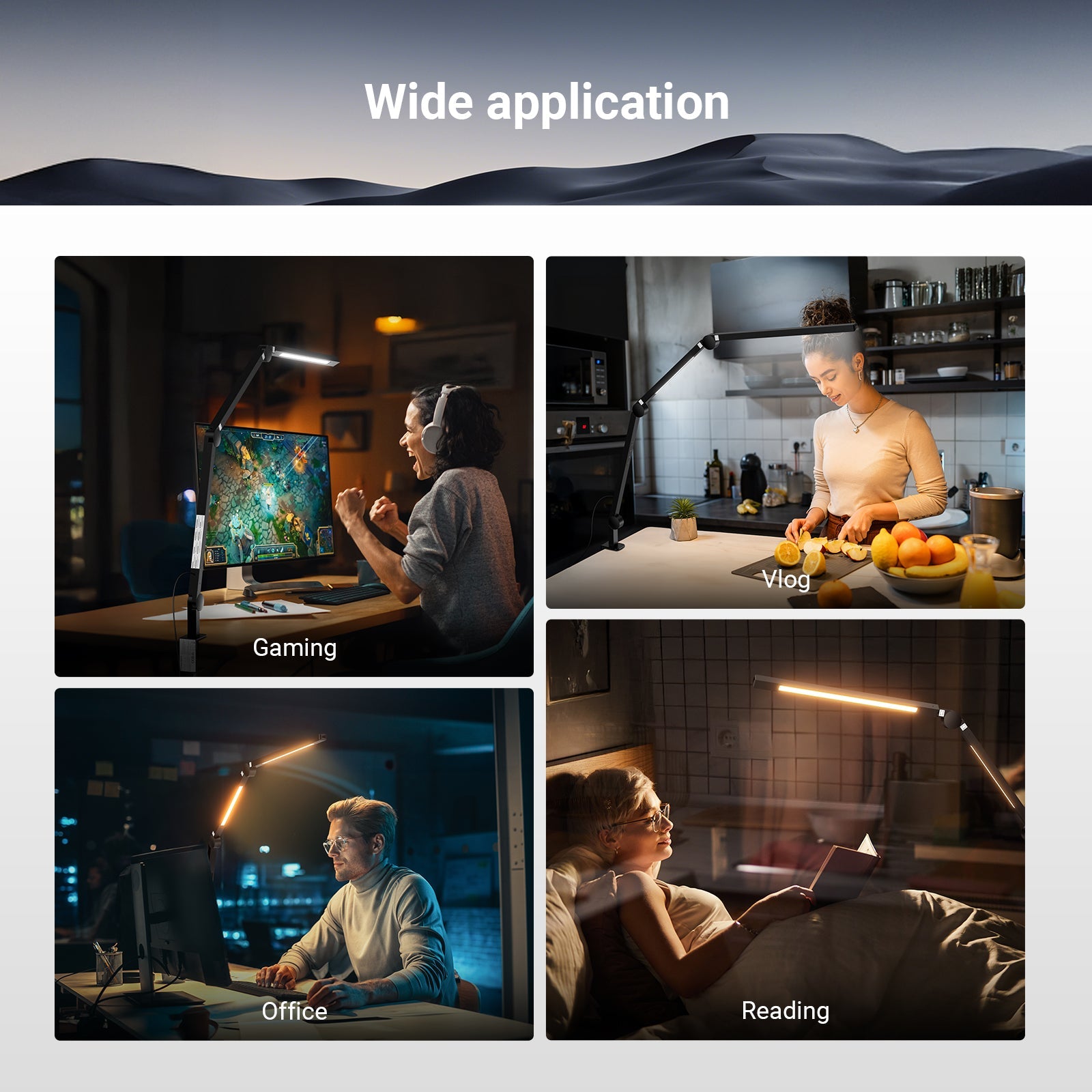 • Dual Light Bars with 42.5" Length- As essential and cool lighting accessories, NEEWER desktop LED lamp for home office deliver broad, even, and bright overhead illumination up to 1150lux/0.5m. Takes up small desk spaces over computer monitor laptop for video calls, architects designing, work from home, study at college dorm room, workbench drafting, etc.