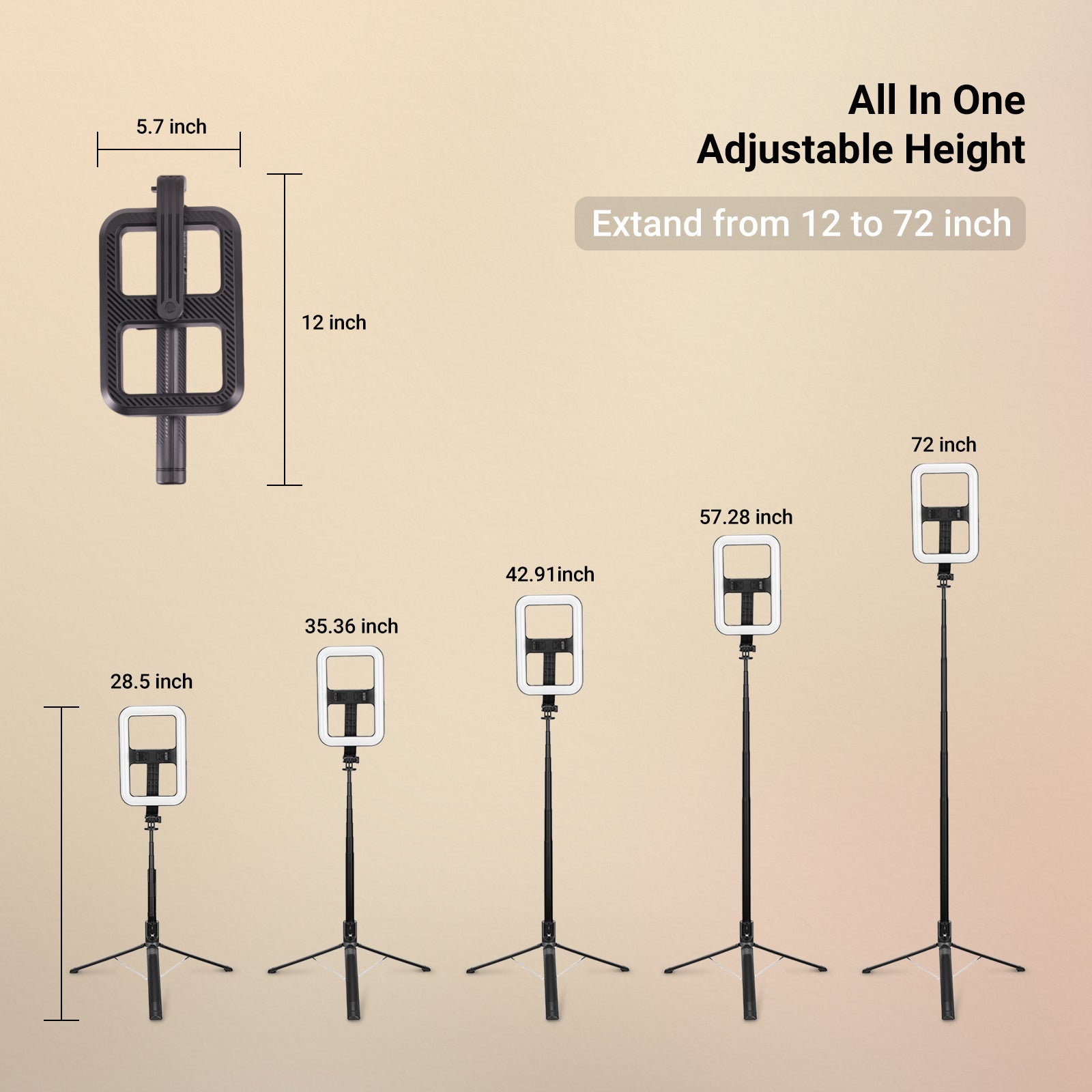 • All in One- Breaking the limits of traditional design, NEEWER NL100B is a wireless selfie ring light with tripod stand that runs on battery and folds down to 12"x5.7"3.1". It extends up to 72", used as a selfie stick or placed on the ground for group shots & content creation