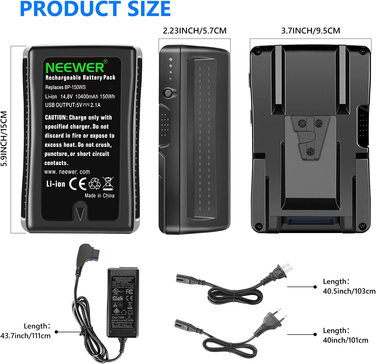 - High Battery Capacity- With a high capacity of 150Wh (10400mAh) and a maximum load of 10 amps, Neewer BP-150WS V-Mount Battery provides sufficient battery power for lengthy filmmaking and photography projects. Check the battery by pressing the Battery Capacity Display Button, and the four blue LED indicators will show the remaining battery level