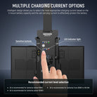 - 100W PD Fast Charging- The USB C input supports 100W PD fast charging. Use it with a 100W or higher PD adapter to achieve 100W full power delivery, ensuring your V mount battery reaches full charge quickly for continuous shooting and video recording. The charging current can be adjusted between 2A, 3A, and 4A, depending on the battery's current tolerance and capacity. Note: NOT compatible with 26V high voltage V mount batteries