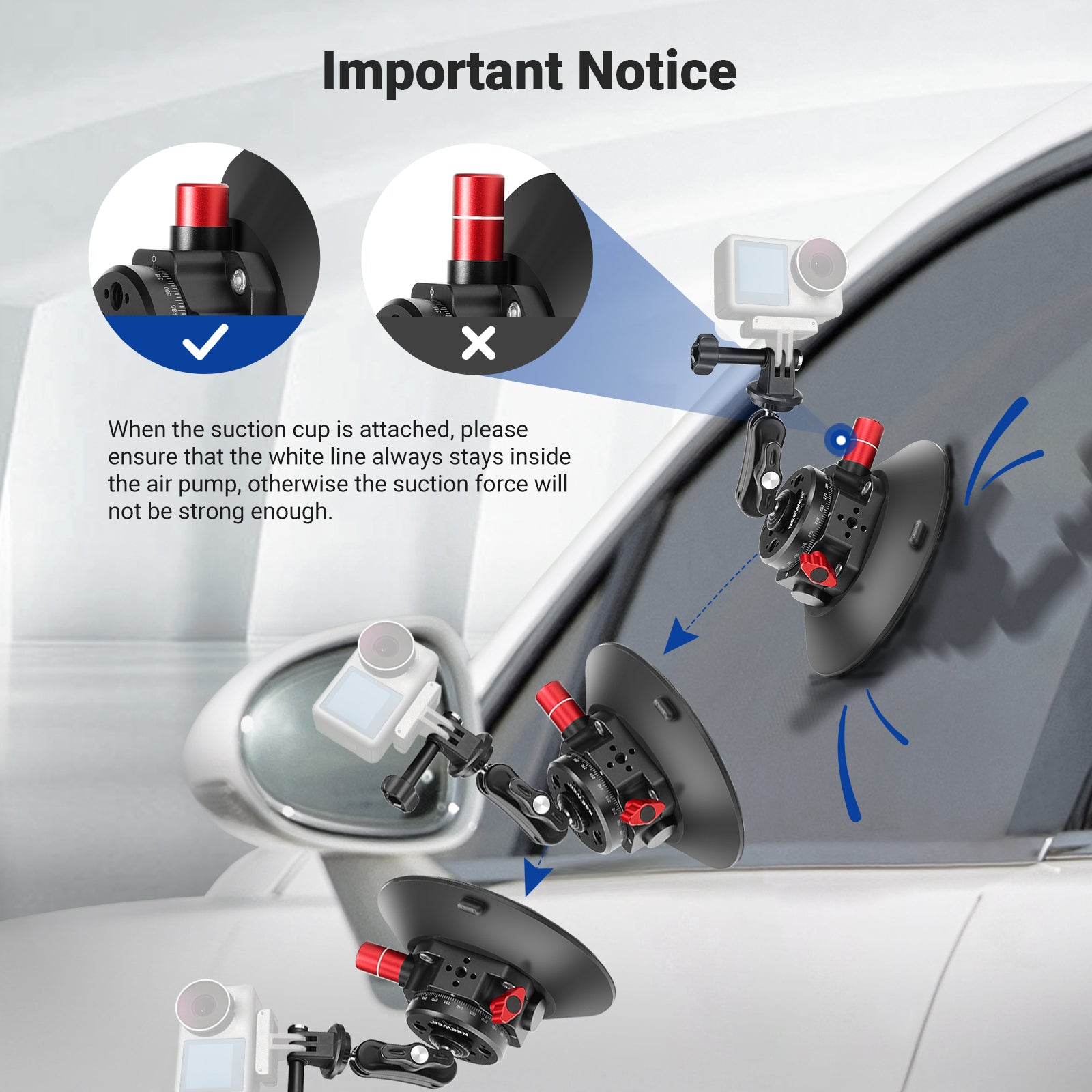- Versatile Suction Cup with Magic Arm- The CA013 accessories kit has a powerful pump activated vacuum suction cup to stick to most surfaces and rotate a mirrorless camera, action camera, and phone holder 360°. Compatible with GoPro Hero 13 12 11 10 9 Black Go Pro Max Insta360 X5 X4 X3 Go 3S Insta 360 Ace Pro DJI Osmo Action 6 5 Pro 4 3 2 Sony Canon Nikon DSLR, etc. An articulating magic arm with two swivel 1/4" ball heads provides flexible mounting positions