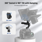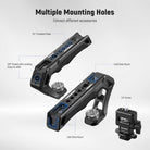 - Top Handle & Monitor Mount- The top handle firmly attaches to the camera cage via a 3/8" screw with locating pins for ARRI and features a contoured silicone grip for stable handheld shooting. The monitor mount, compatible with Atmos Ninja V and other 5"-7" field monitors with a 1/4" thread, connects to the top handle via the cold shoe and supports 360° swivel and 180° tilt for angle adjustment