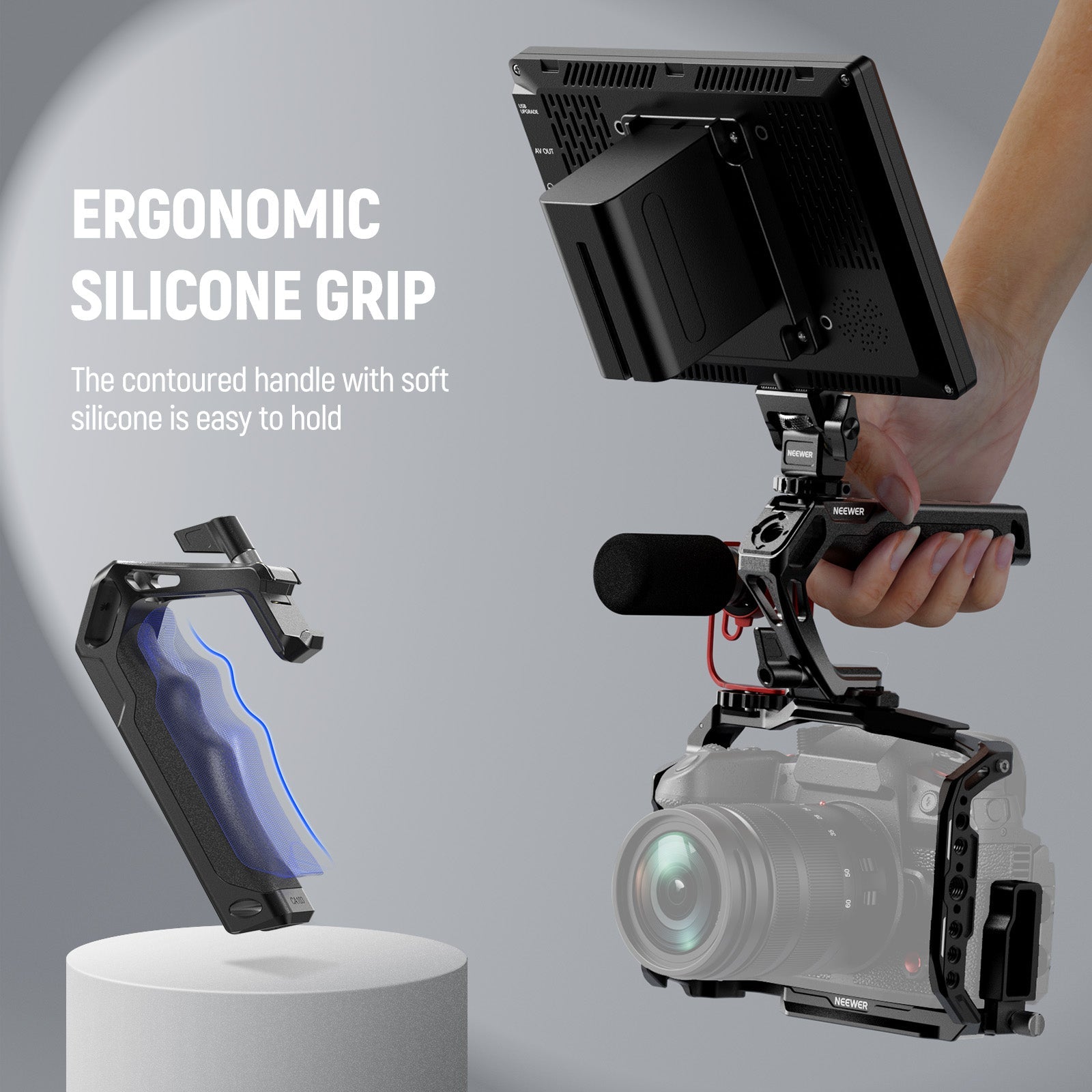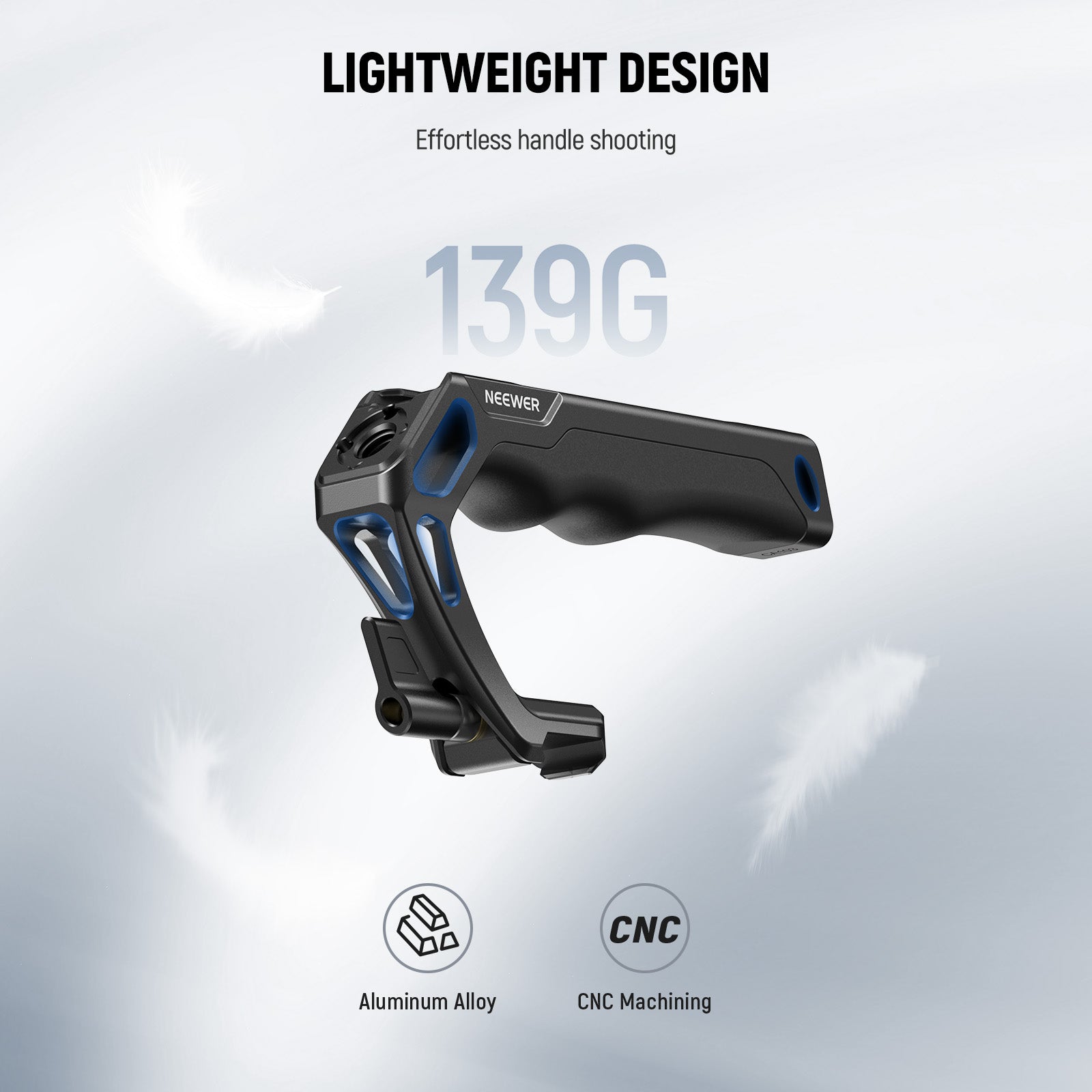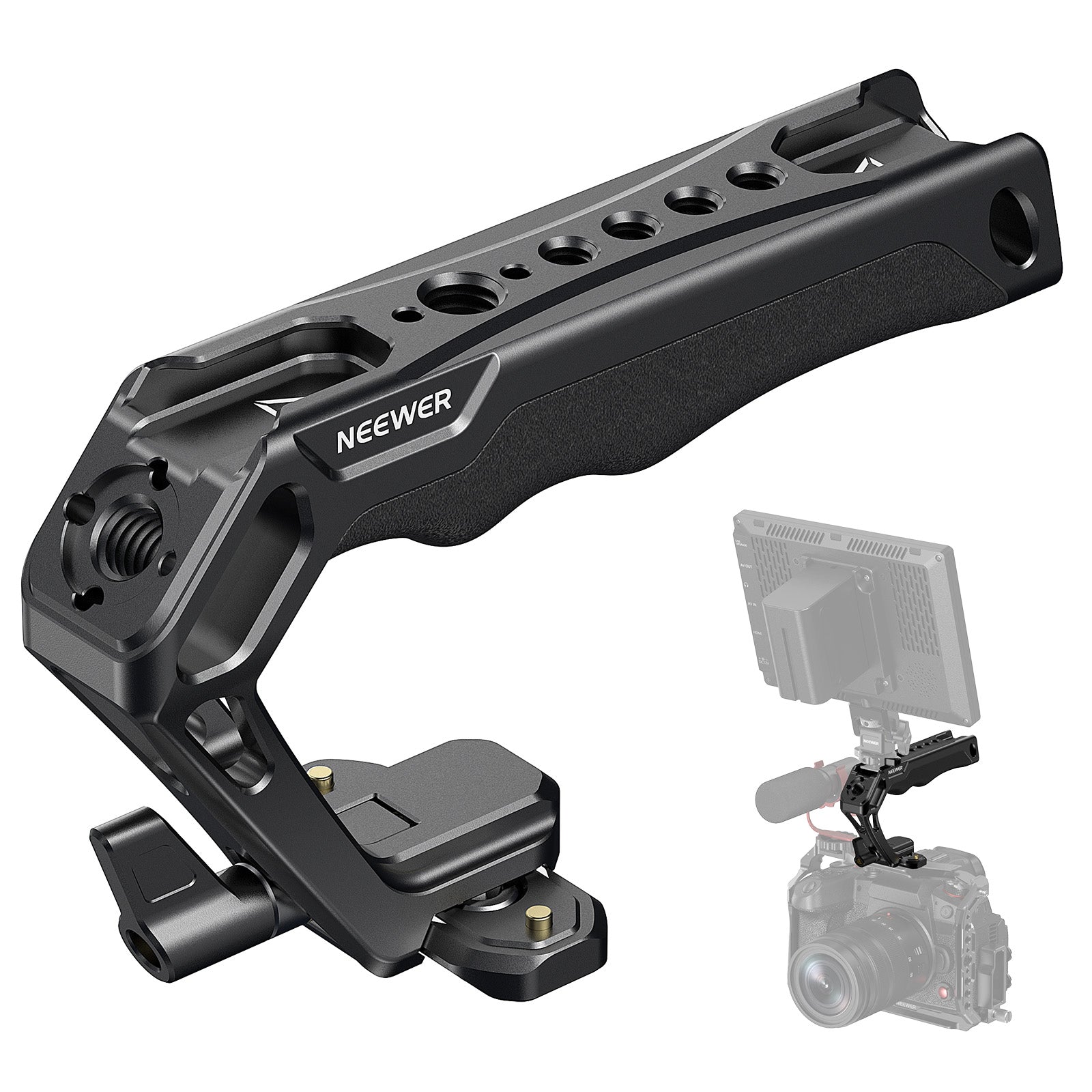 - Strong & Lightweight Structure- Engineered with solid yet lightweight aluminum alloy, this camera top handle grip can support a camera up to 22lb/10kg and is easy to carry in your bag. The black anodized treatment withstands all outdoor conditions and resists scratches