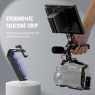 - Ergonomic Soft Silicone Grip- A contoured silicone grip offers comfort and stability for low angle shooting on the go