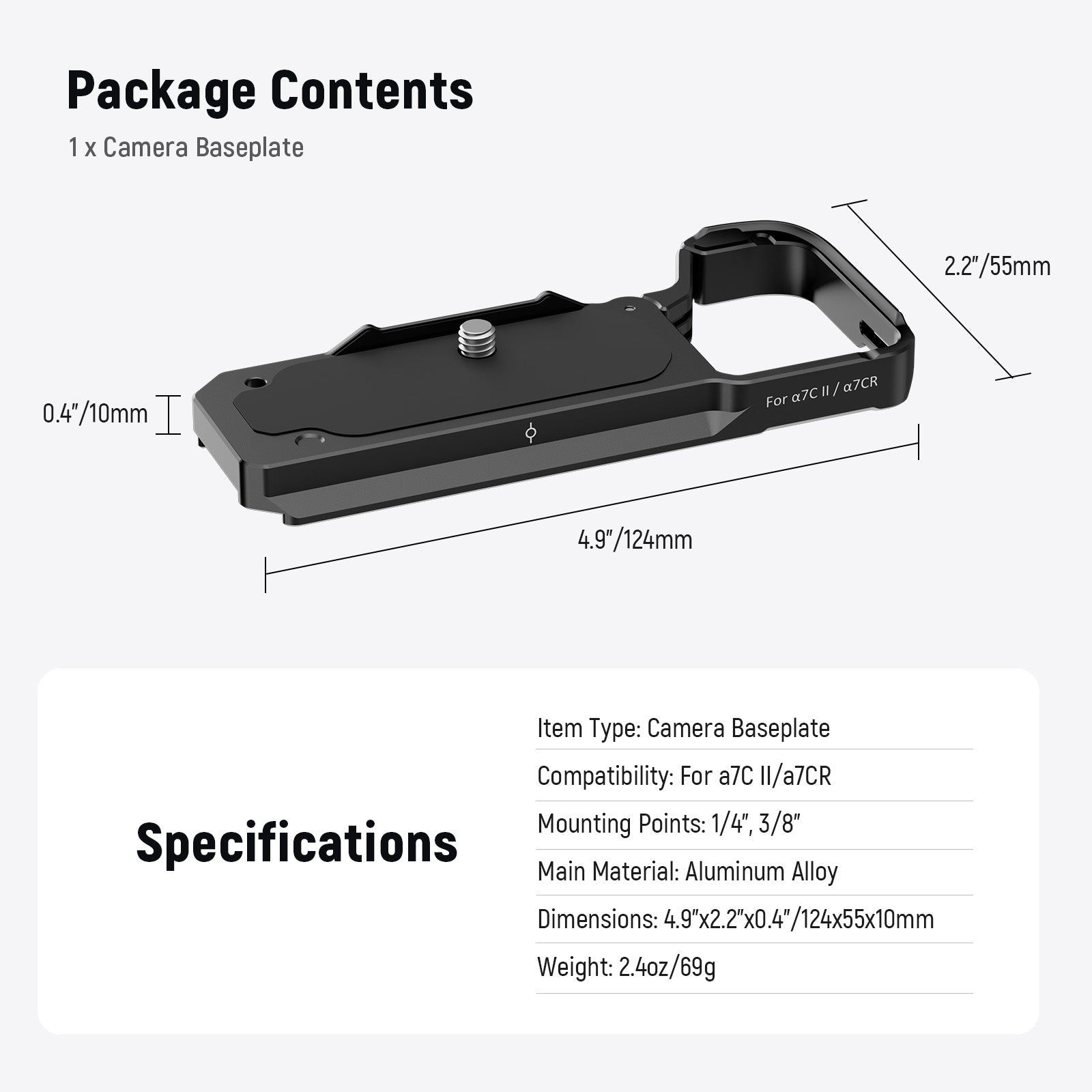 - Designed for α7C II/α7CR Camera- Compatible with Sony Alpha α7CII and α7CR, this camera baseplate accessory features a spring loaded mechanism that offers easy access to the battery compartment while the slim design preserves the camera's original aesthetics