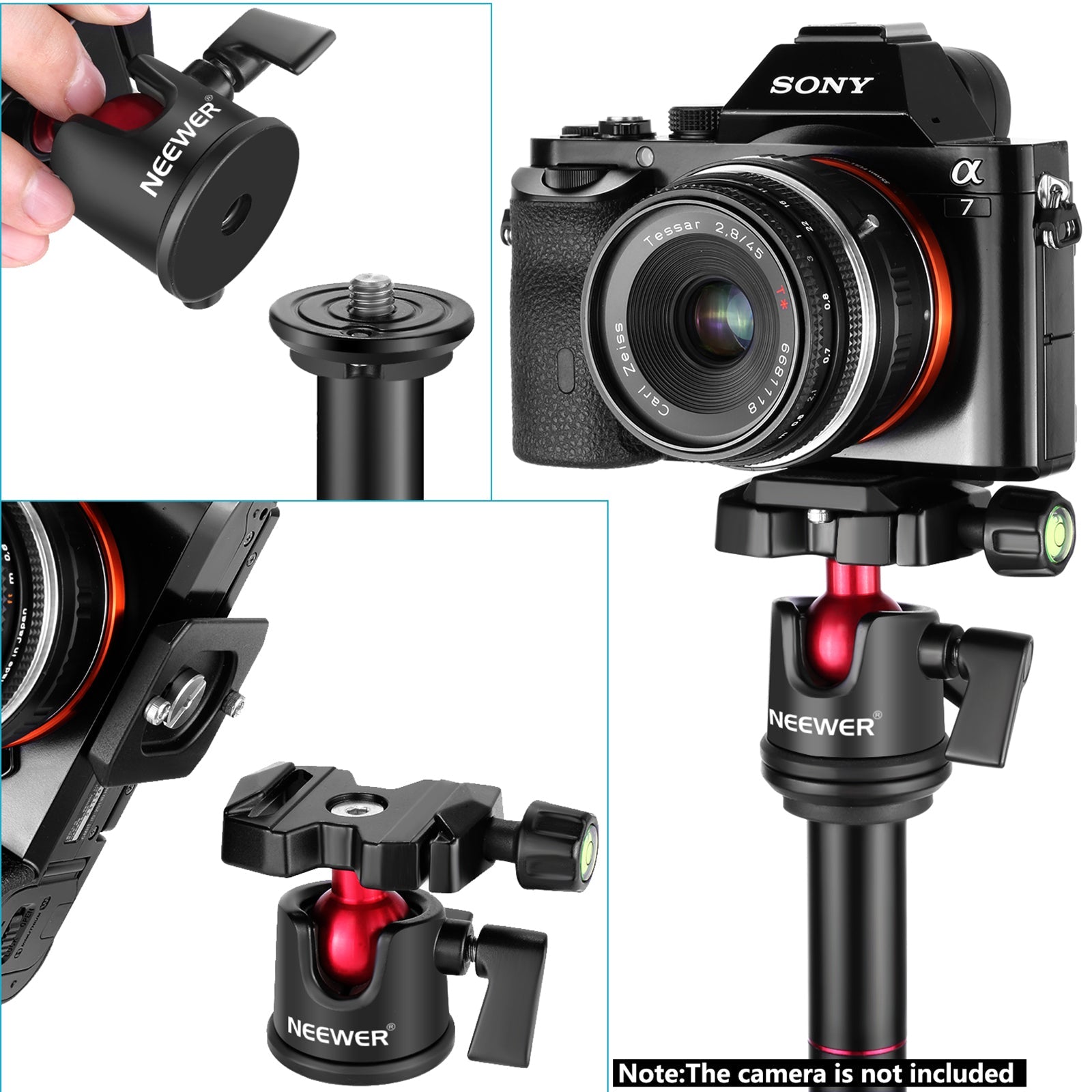 - This mini ball head has a 360-degree panoramic base with 2 twist locks, so you are able to set your camera at different angles easily.