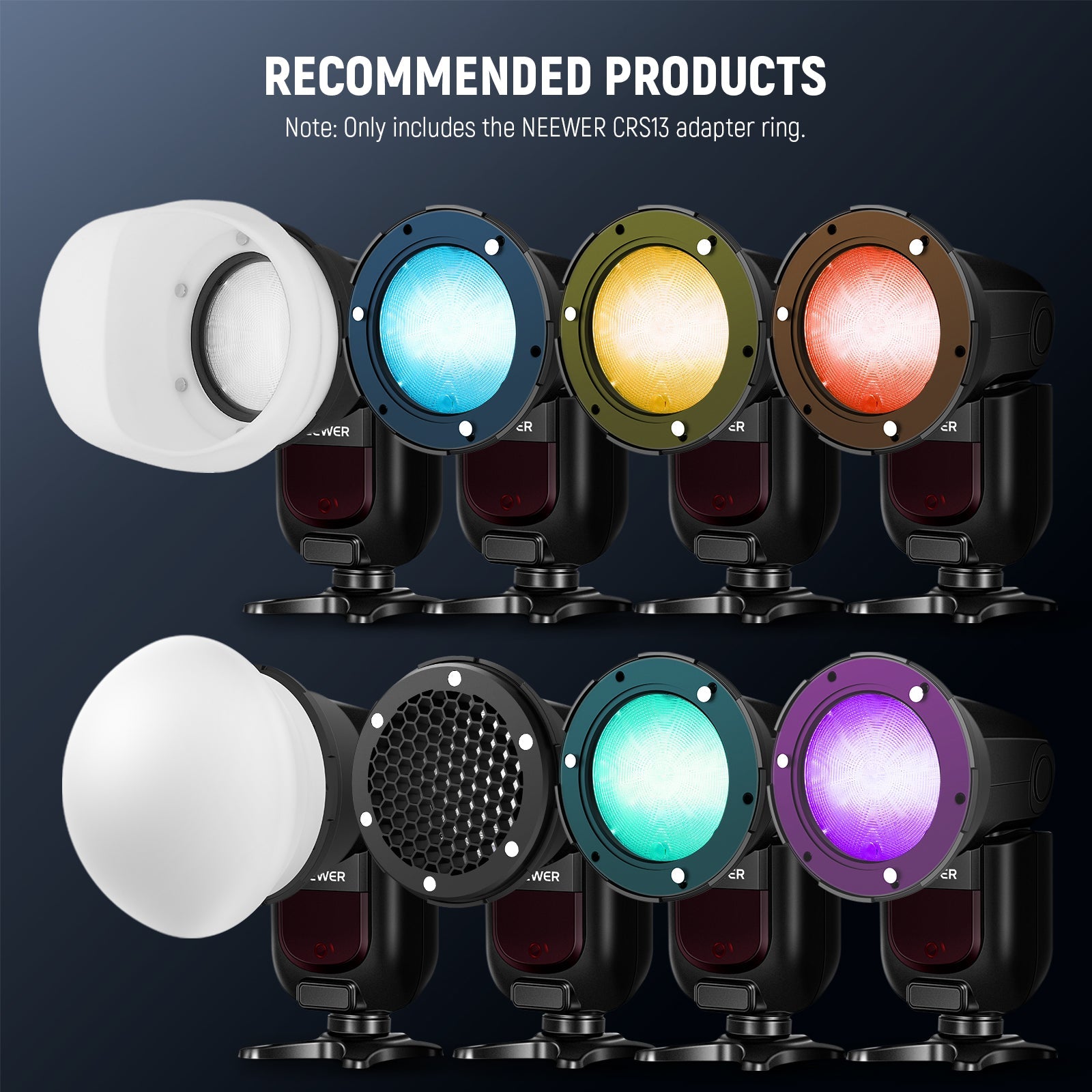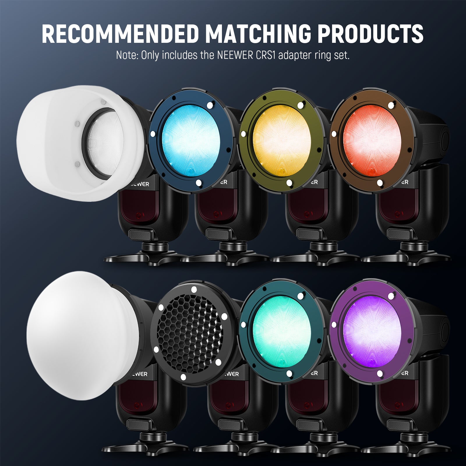 - Round Flash Adapter Ring- This magnetic adapter ring connects a wide range of flash accessories to NEEWER round head camera flashes for creative, artistic, and professional flash photography as content creator essential and influencer must have gear