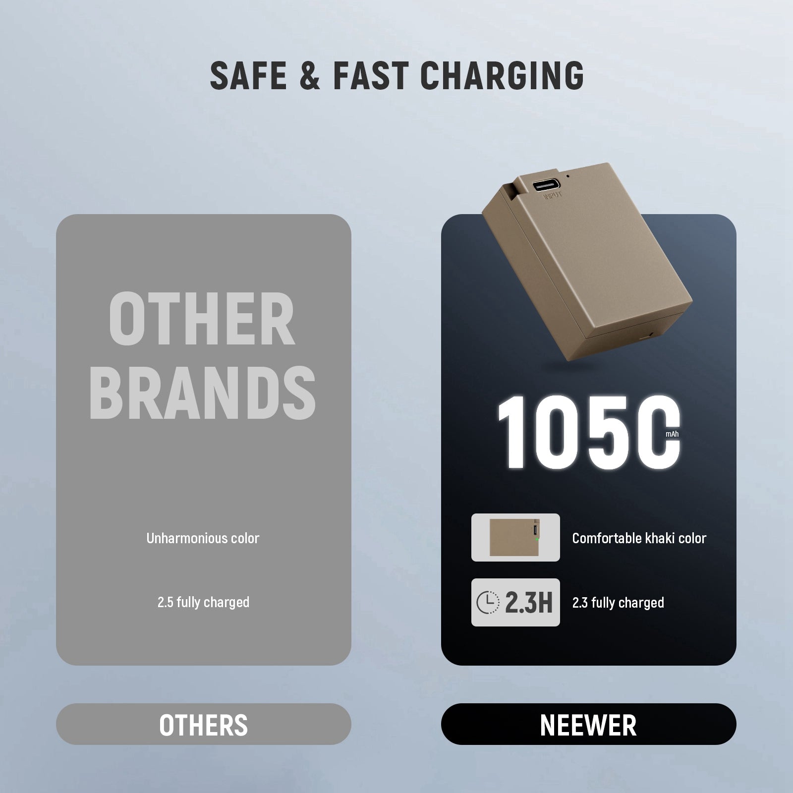 - High Battery Capacity- The battery pack has 1100mAh (7.2V/7.9Wh) capacity and can be fully charged in 2.3 hours with a normal 5V 2A USB power adapter. Note: PD fast charging is NOT supported