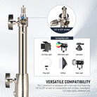 - Versatile compatibility-?the universal attachment point ensures seamless attachment to the centre column of a C tripod, rolling tripod or other conventional light stands that are easily secured with the rotary knob. In addition, the C tripod arm is equipped with a two-way bolt with 1/4 inch and 3/8 inch screws to ensure compatibility with flashes, monolights, LED video lights, reflectors and more