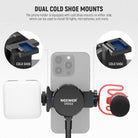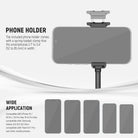 - Expand with Cold Shoe- The phone clamp of the overhead tabletop tripod is equipped with a cold shoe mount on each side, making it possible to attach fill lights, microphones, and other accessories while securing your phone in place, enhancing lighting and improved sound capture for professional recordings and creative smartphone shooting