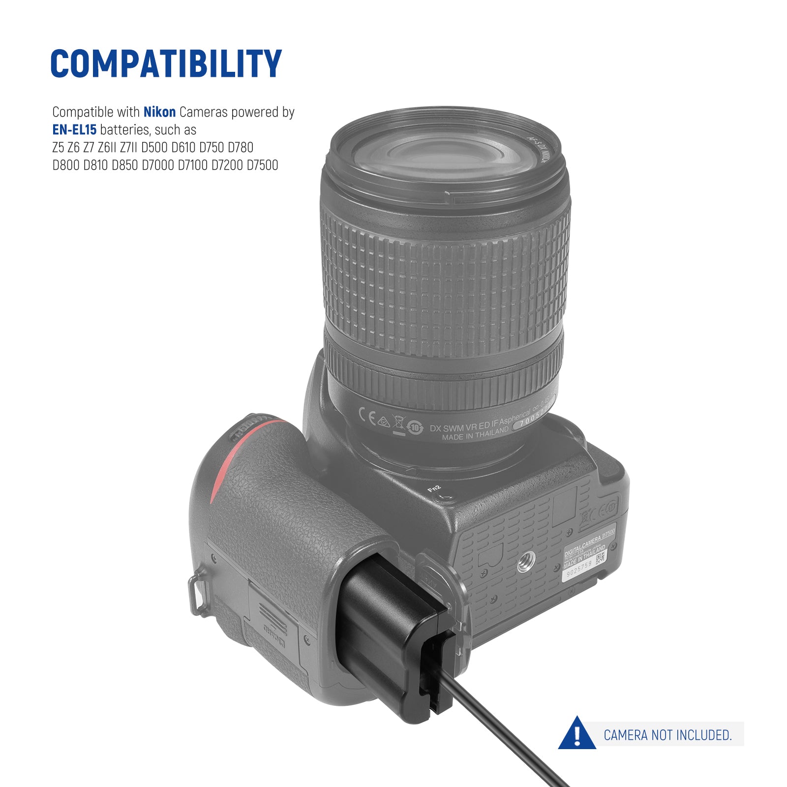 - Compatible with cameras that work on EN-EL15 batteries. Compatible with NIKON Z5 Z6 Z7 Z6 II Z7 II D500 D600 D610 D750 D7000 D7100 D7200 D7500 D800 D800E D810 D850 D800A.