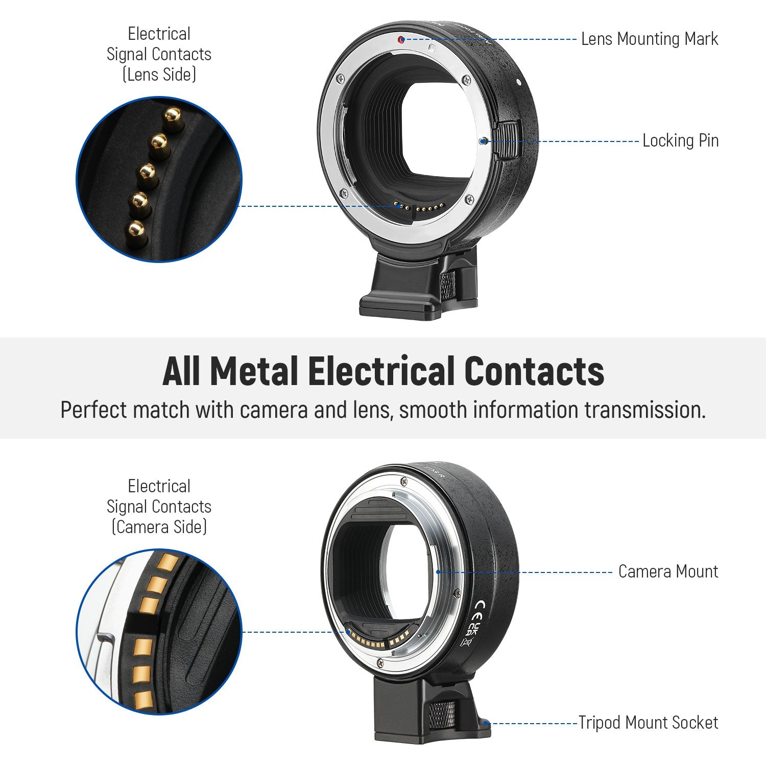 - Complete Functions Retained- Electrical contacts maintain fast speed autofocus, auto aperture control, image stabilization, and other functions on your lens while transferring EXIF data to your camera