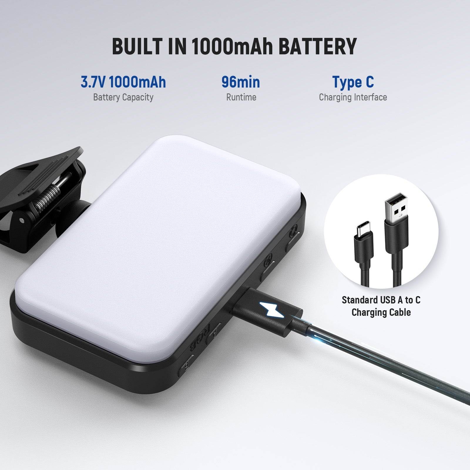 - Rechargeable LED Video Fill Light- The built in 1000mAh rechargeable battery powers the phone video light for up to 96min on a full charge. Easily recharged using a 5V/1A power source (wall chargers, portable chargers, or computers) using the USB Type charging cable, this phone fill light is an ideal choice for effortless on the go content creation as portable creator essential selfie accessories, streamer and influencer must have photography gear