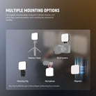 - Multiple Mounting Options- Attach it to any magnetic metal surface via the built in magnets on the back. Or mount it on light stands, tabletop tripods, or cameras via the 1/4" screw hole and the cold shoe adapter. The three additional cold shoe mounts on the edges provide options for connecting camera or photography videography accessories like microphones and LED lights. Also includes a mounting clip for attaching to a phone, laptop, and PC for video conferencing, zoom calls, etc