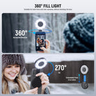 - 360° Swivel Magnetic Selfie Light- The mini fill ringlight as photography accessories is compatible with MagSafe iPhone 16 Pro Max Plus 15/14/13/12 iPad Pro and other magnetic devices. For nonmagnetic devices, use the included adhesive magnet ring to mount it to Android phone for overhead filming recording or desk laptop for video calls, compatible with Samsung Galaxy S25 S24 S23 Ultra, etc. Supports 360° horizontal rotation and 270° vertical tilt, flexible for both front and rear camera use