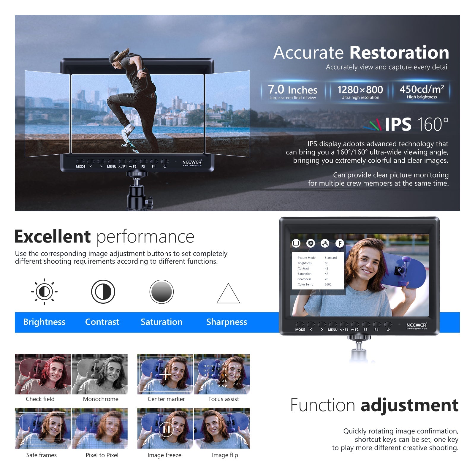 NEEWER F100 7 Inch HD Camera Field Monitor Kit