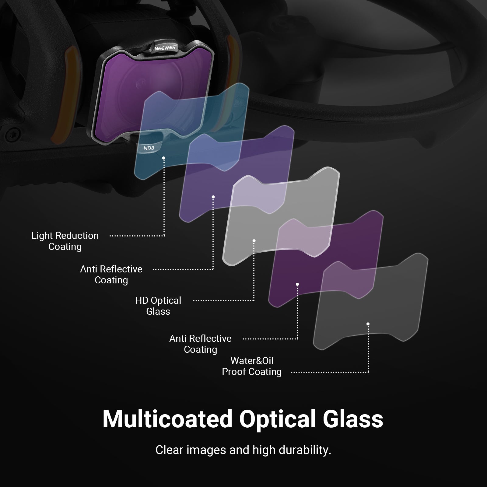 - Multicoated HD Optical Glass- HD optical glass ensures high clarity and accurate color reproduction. Multiple coatings on both sides of the glass are resistant to water, fingerprints, smudge, and scratches, making filters easy to clean (a cleaning cloth included)