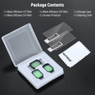 - Slim & Lightweight Construction- With sturdy and ultra slim frames, filters will not affect gimbal storage. Note: Do not apply lens protectors, as they can reduce magnetic strength, cause chromatic aberration, and interfere with gimbal storage