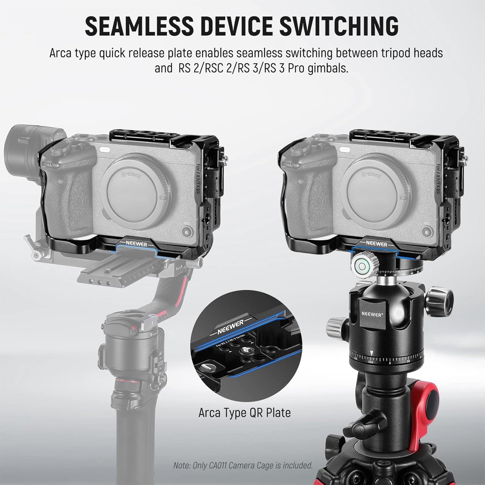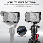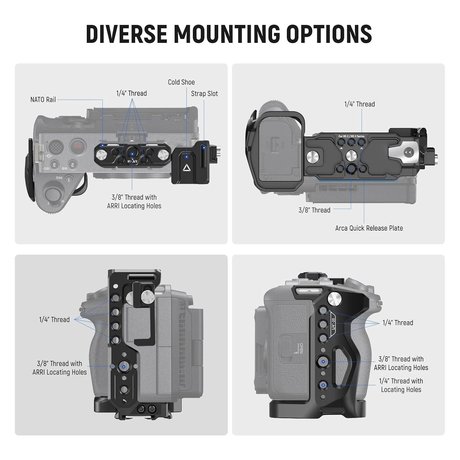 - Arca Type Base for Tripod Head & Gimbal- With a standard Arca type base, the camera cage can swiftly mount on any tripod head or video head with an identical mounting system. Moreover, it is seamlessly compatible with DJI RS 2/RSC 2/RS 3/RS 3 Pro stabilizers for smooth, cinematic video recording