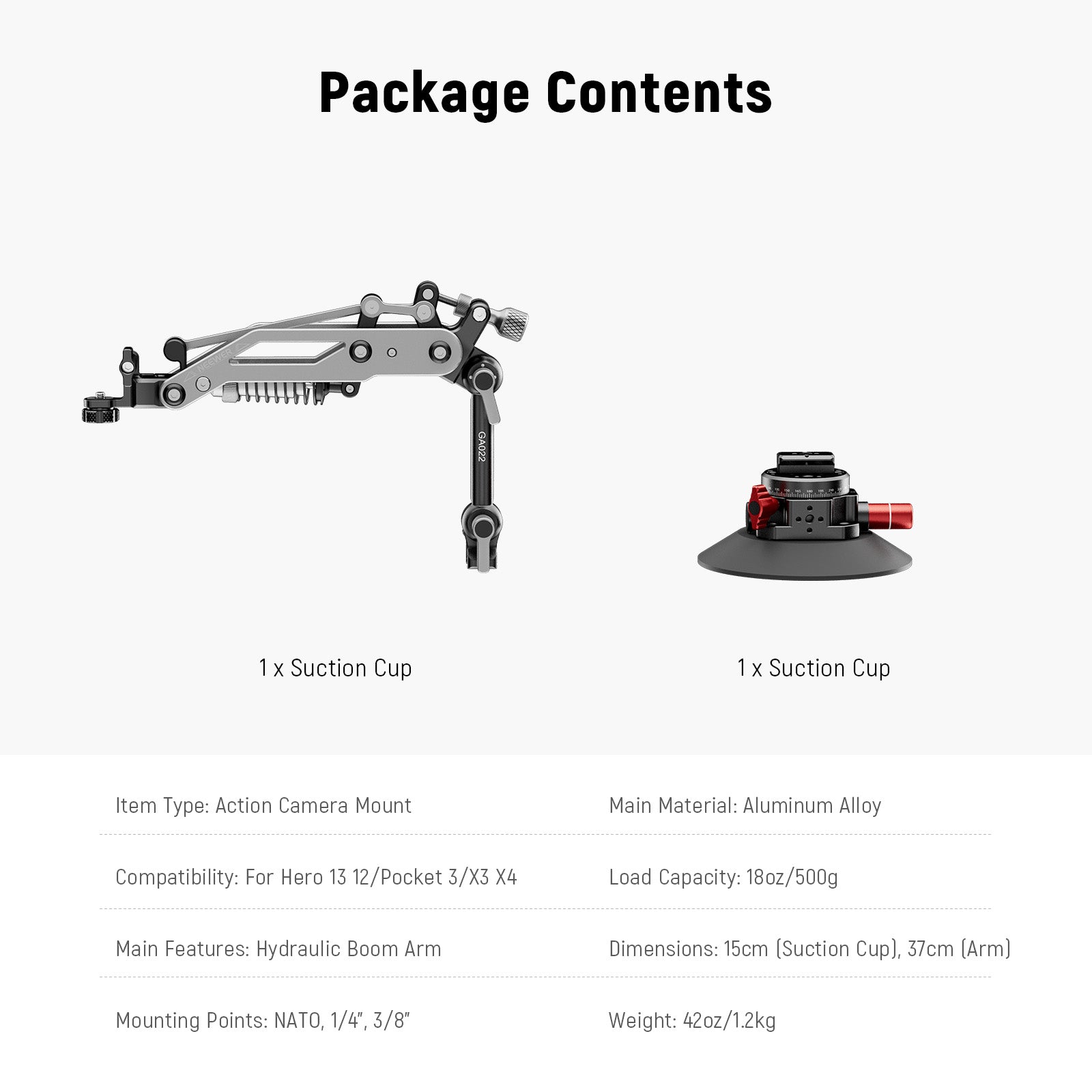 NEEWER GA022 Hydraulic Boom Arm Suction Cup For GoPro 13 12 Pocket 3