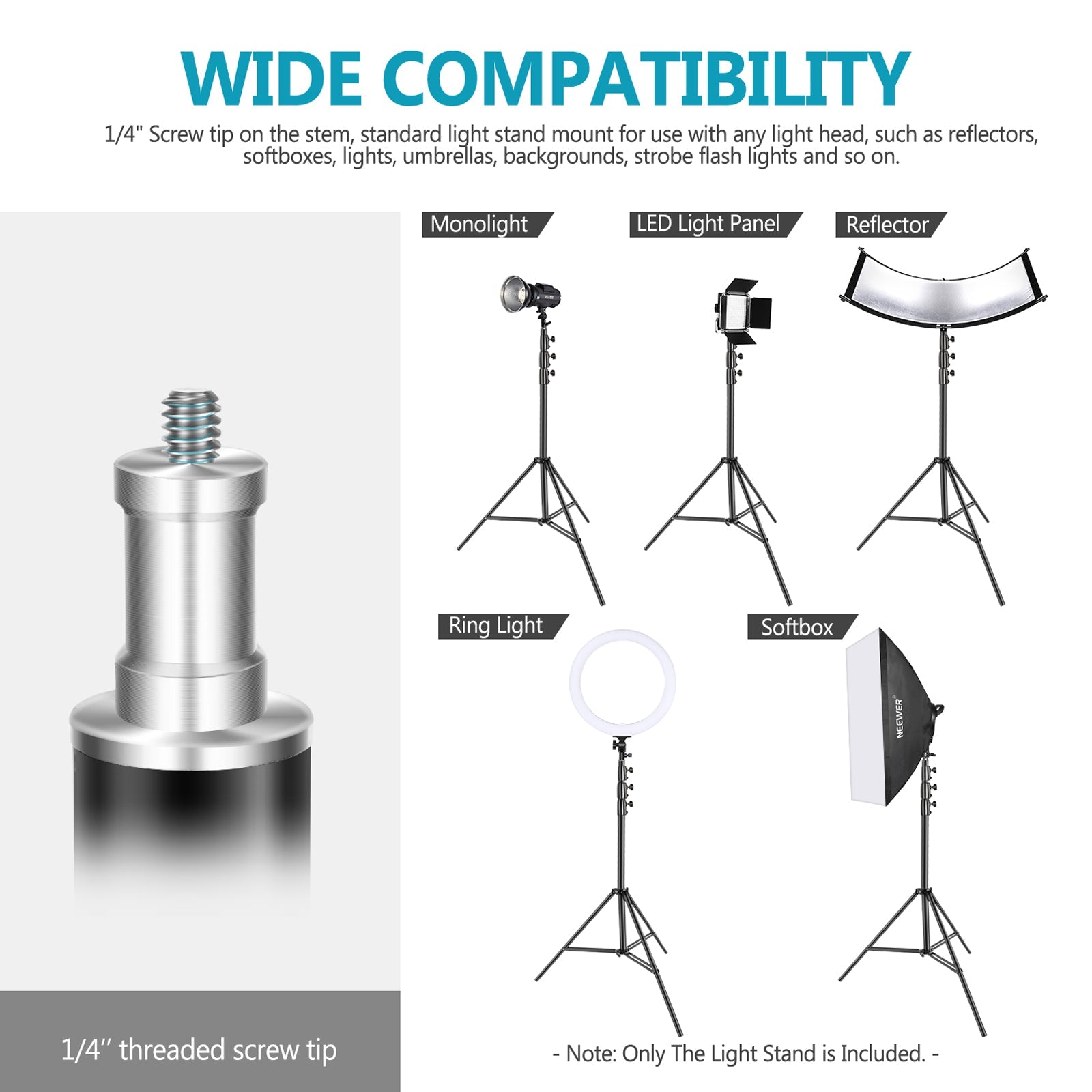 Universal Mounting Screw- Industry-standard 1/4” mounting screw is universally compatible with DSLR cameras, LED video lights, ring lights, strobes, monolights, reflectors, softboxes, and other devices up to 22lb (10kg)