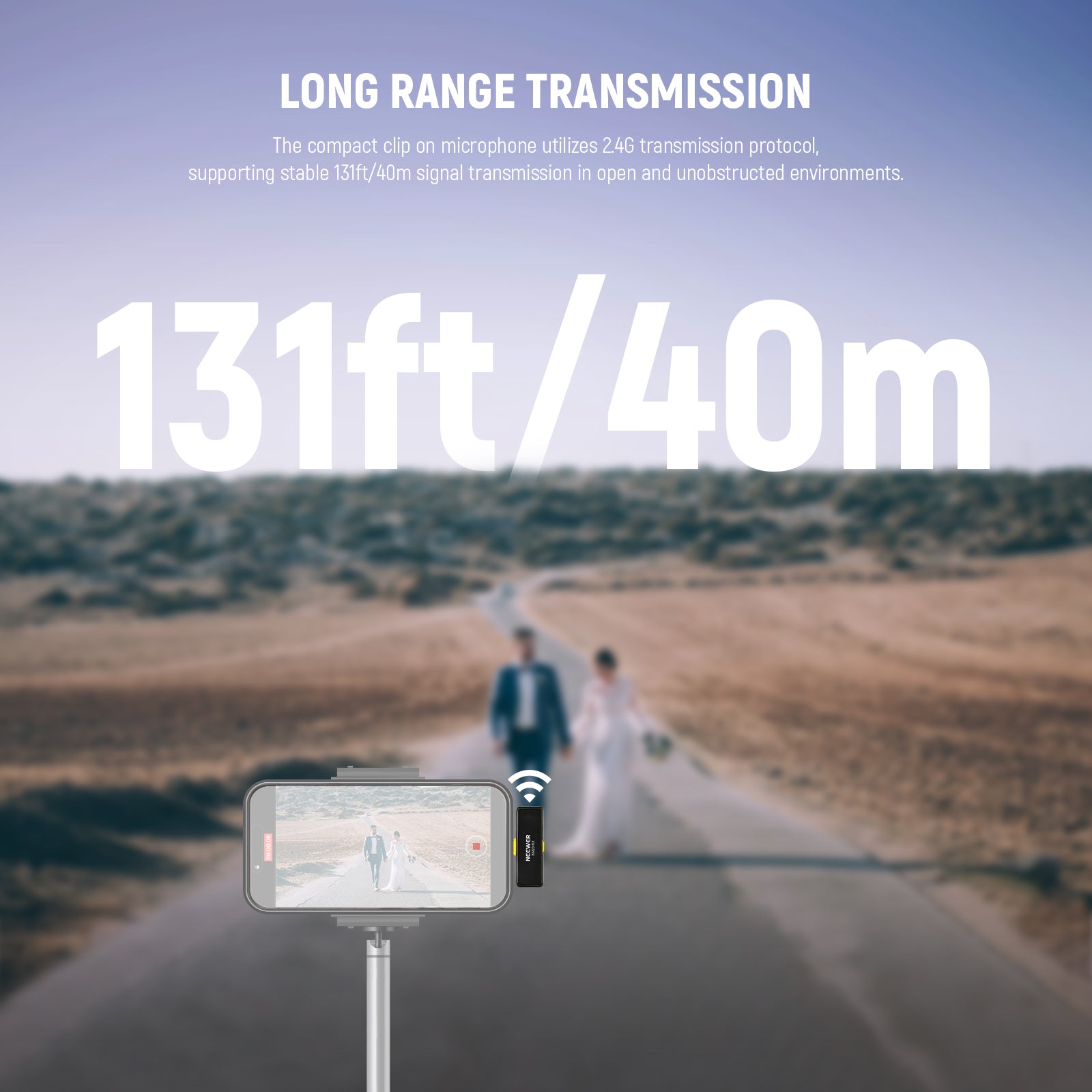 - Stable Transmission & 7H Battery Life- The tiny clip on microphone utilizes 2.4G transmission protocol, supporting stable 131ft/40m signal transmission in open and unobstructed environments. The transmitter can run for 8 hours and it takes 1.5 hours to charge TX fully. You can enjoy convenient phone charging directly through the Type C interface on the receiver