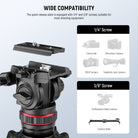 - Extensive Expansion Options- The 1/4" and 3/8" screws on the quick release plate are for DSLR cameras, mirrorless cameras, camcorders, telescopes, or sliders. Compatible with Sony Canon Nikon and other DSLR cameras. An extra 1/4" side screw hole of this tripod stand attaches accessories such as monitors, LED video lights, microphones, or magic arms to further build your photography and videography rig
