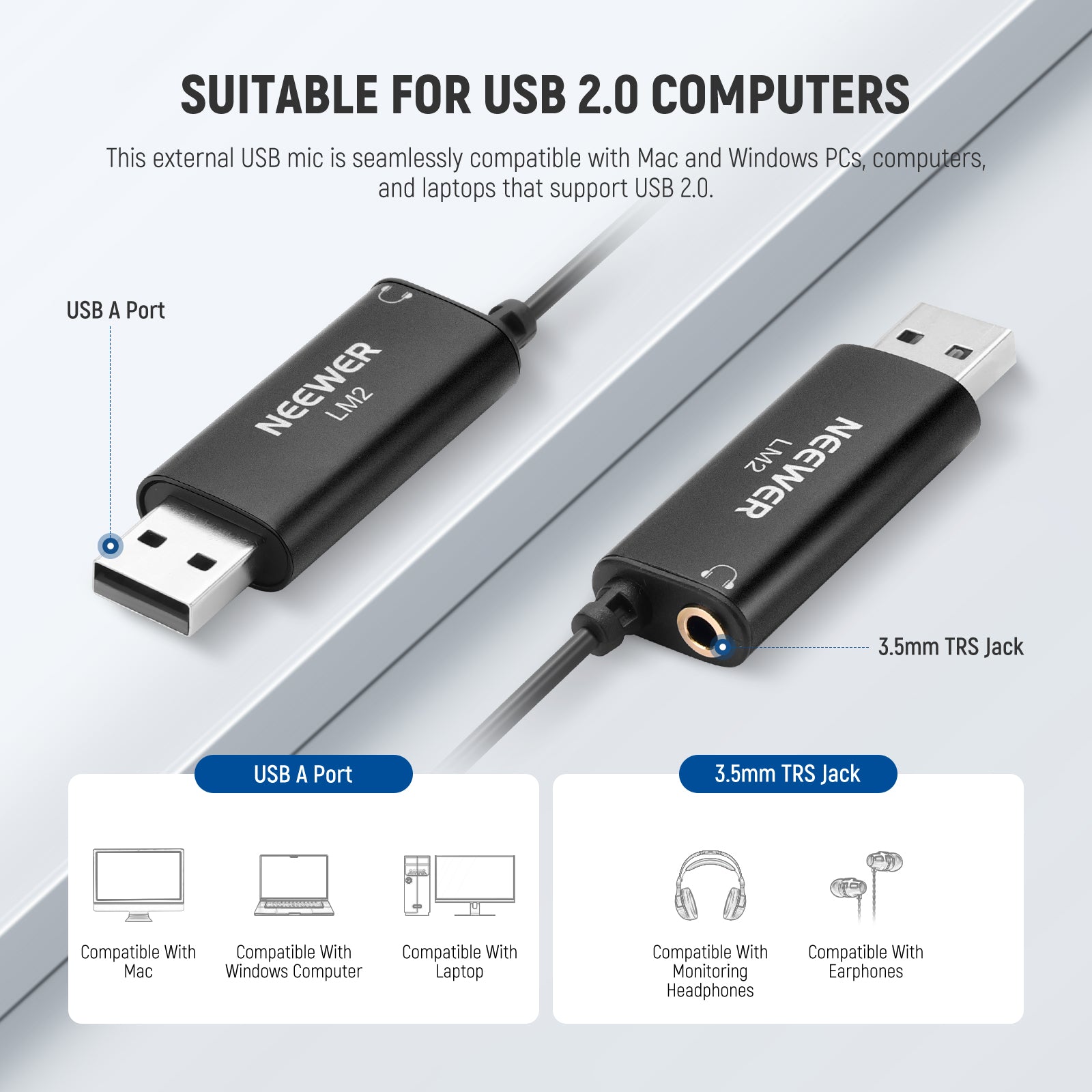 NEEWER LM2 Plug & Play Omnidirectional USB Lapel Microphone with 3.5mm TRS Jack