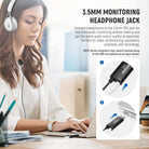 - 3.5mm Monitoring Headphone Jack- Connect headphones to the 3.5mm TRS jack for real time audio monitoring without latency and get the same audio output quality as expected. Perfect for video conferencing, voiceovers, podcasts, and recordings.
