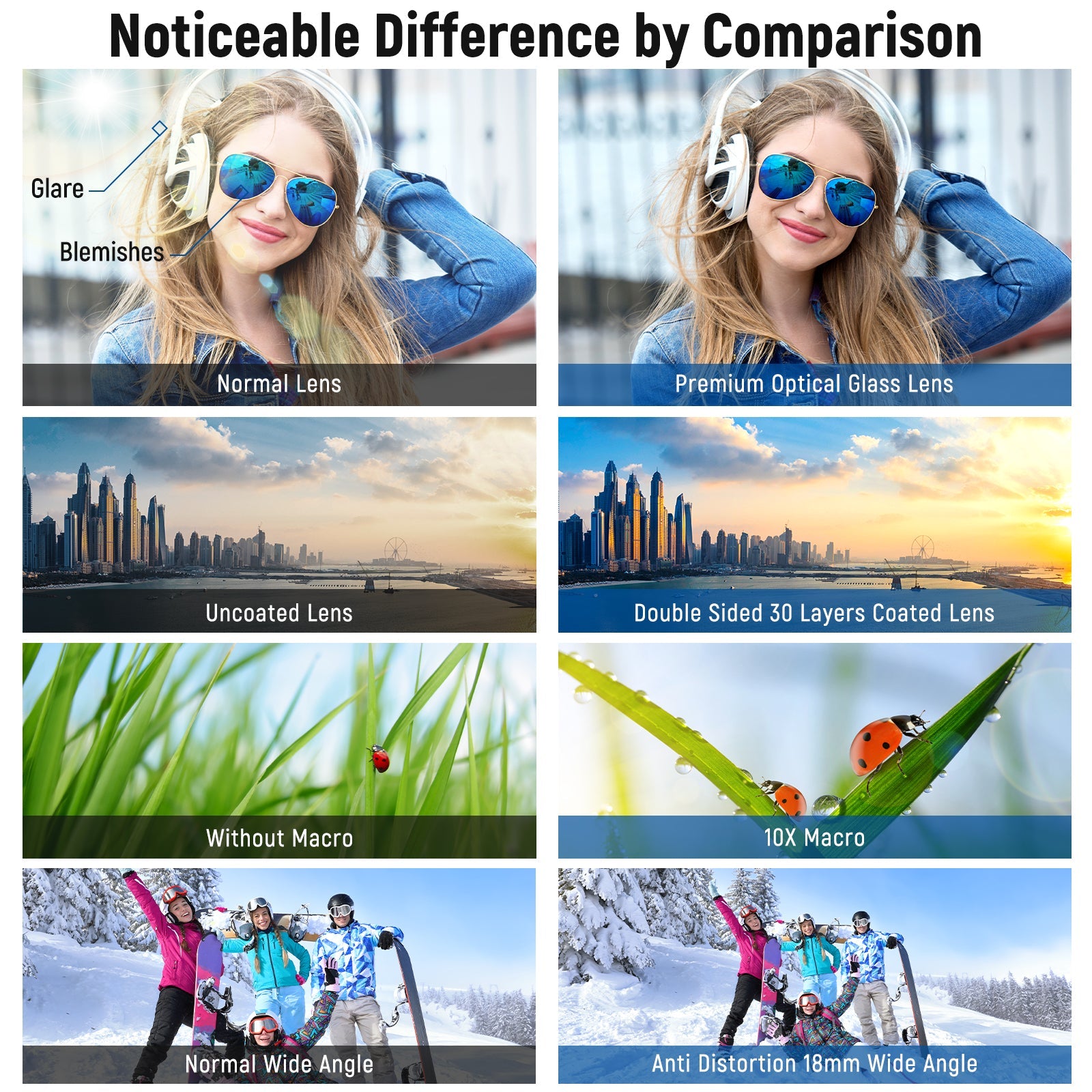 - Ultra Wide Angle Additional Lens- Attach our ultra wide angle additional lens to your lens for a wider field of view to capture more in your frame. Note: The wide angle lens must be used together with the macro lens