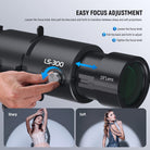 - Advanced Optical Spotlight Snoot- With precise optical aspheric lenses and advanced multicoating technology, this spotlight offers 98% light transmission for boosted brightness and efficient light concentration. Equipped with a 19< projection lens, it casts clear light spots with uniform brightness and sharp edges. When paired with the NEEWER CB300B, it increases illuminance by 6.9x at 1m
