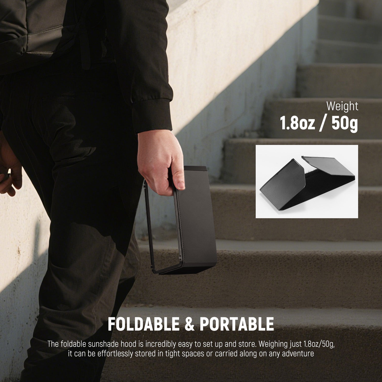 - Foldable & Portable- The foldable sunshade hood is incredibly easy to set up and store. Weighing just 1.8oz/50g, it can be effortlessly stored in tight spaces or carried along on any adventure