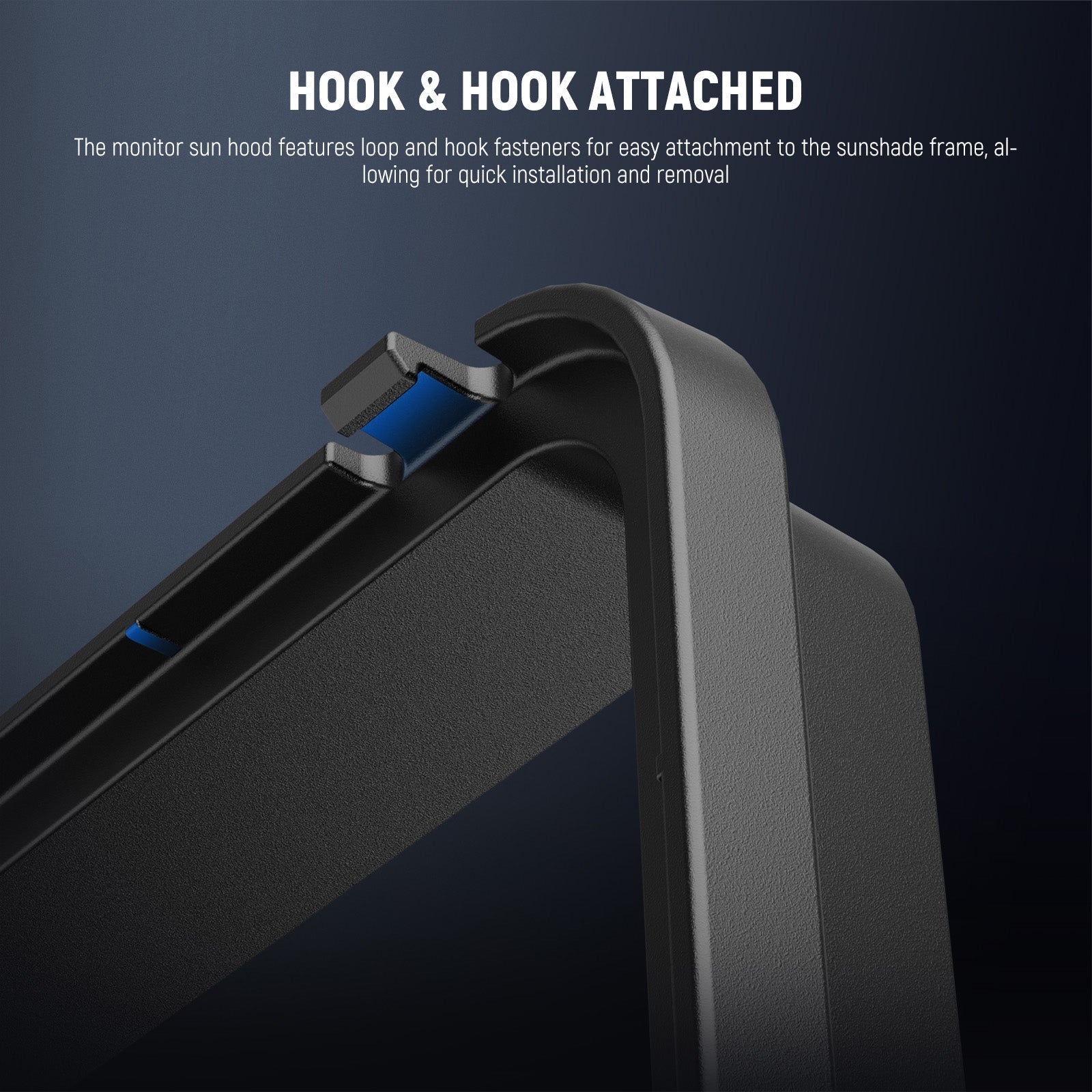 - Hook & Hook Attached- The monitor sun hood features loop and hook fasteners for easy attachment to the sunshade frame, allowing for quick installation and removal