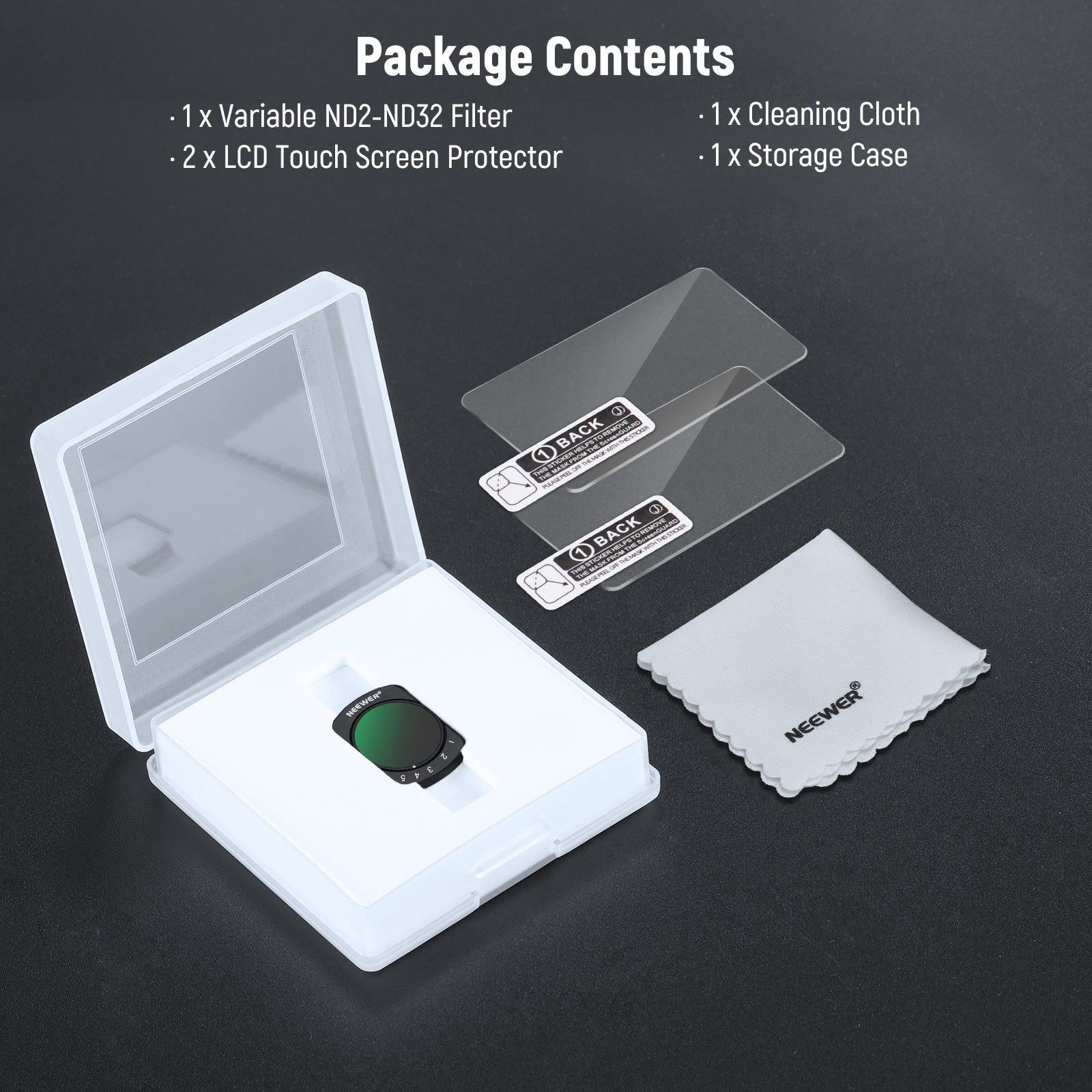 - 1 x Variable ND2 to ND32 Filter