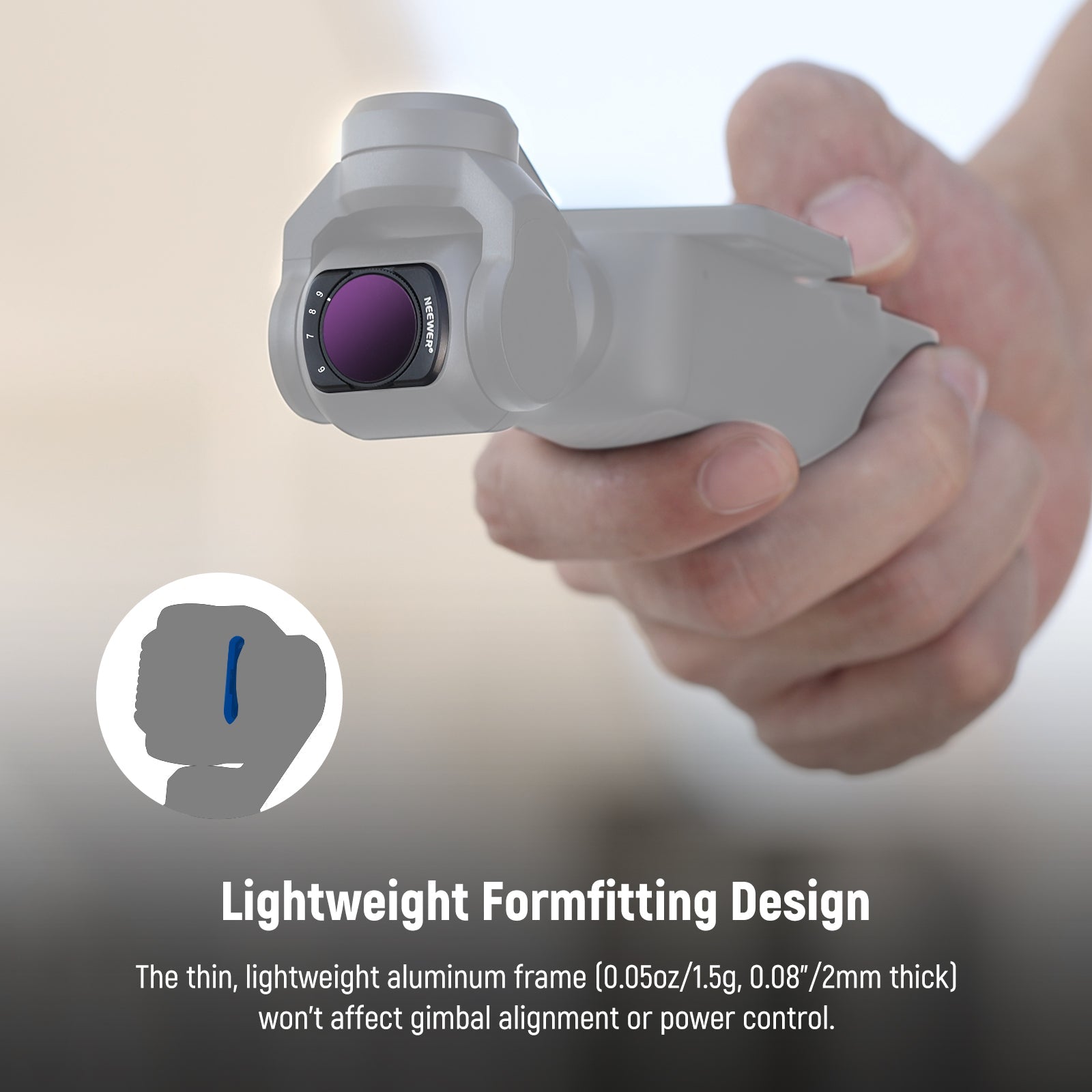 - Fully Compatible with Osmo Pocket 3- NEEWER Magnetic Variable ND64-ND512 Filter is seamlessly compatible with DJI Osmo Pocket 3, helping you to handle various light conditions with ease. From overcast to bright sunny days, simply rotate this adjustable neutral density filter to adjust the amount of light that enters your camera lens to avoid overexposure.