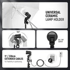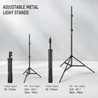 - Adjustable Metal Light Stands- 3 light stands are included. 2 high light stands with 3 sections offer a maximum height of 83" (210cm), and the short light stand with 2 sections can extend to 43.3" (110cm) for lighting in low positions. E26 light bulb sockets are included, and 11' (336cm) prolonged cables let you deploy the lighting easily