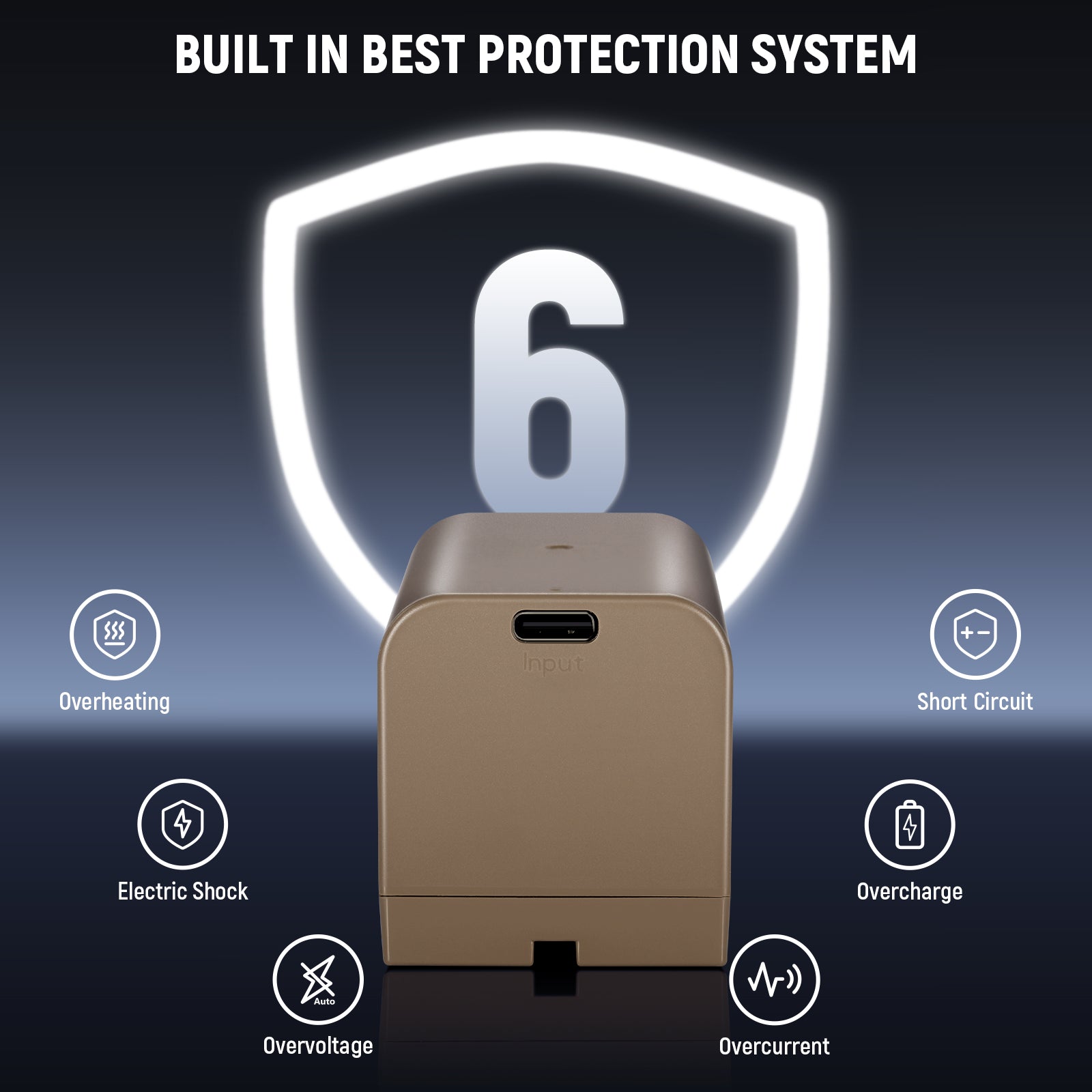 - Advanced Protection System- The thorough protection system can effectively protect against overcharging, short circuits, overheating, overcurrent, overvoltage, and other hazards