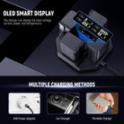 - OLED Smart Display- The main interface displays the real time charging status of each battery once plugged in, including voltage, current, temperature, and power, making the charging process visual. Press the button to switch to the display of the charger's input voltage, current, power, and temperature.