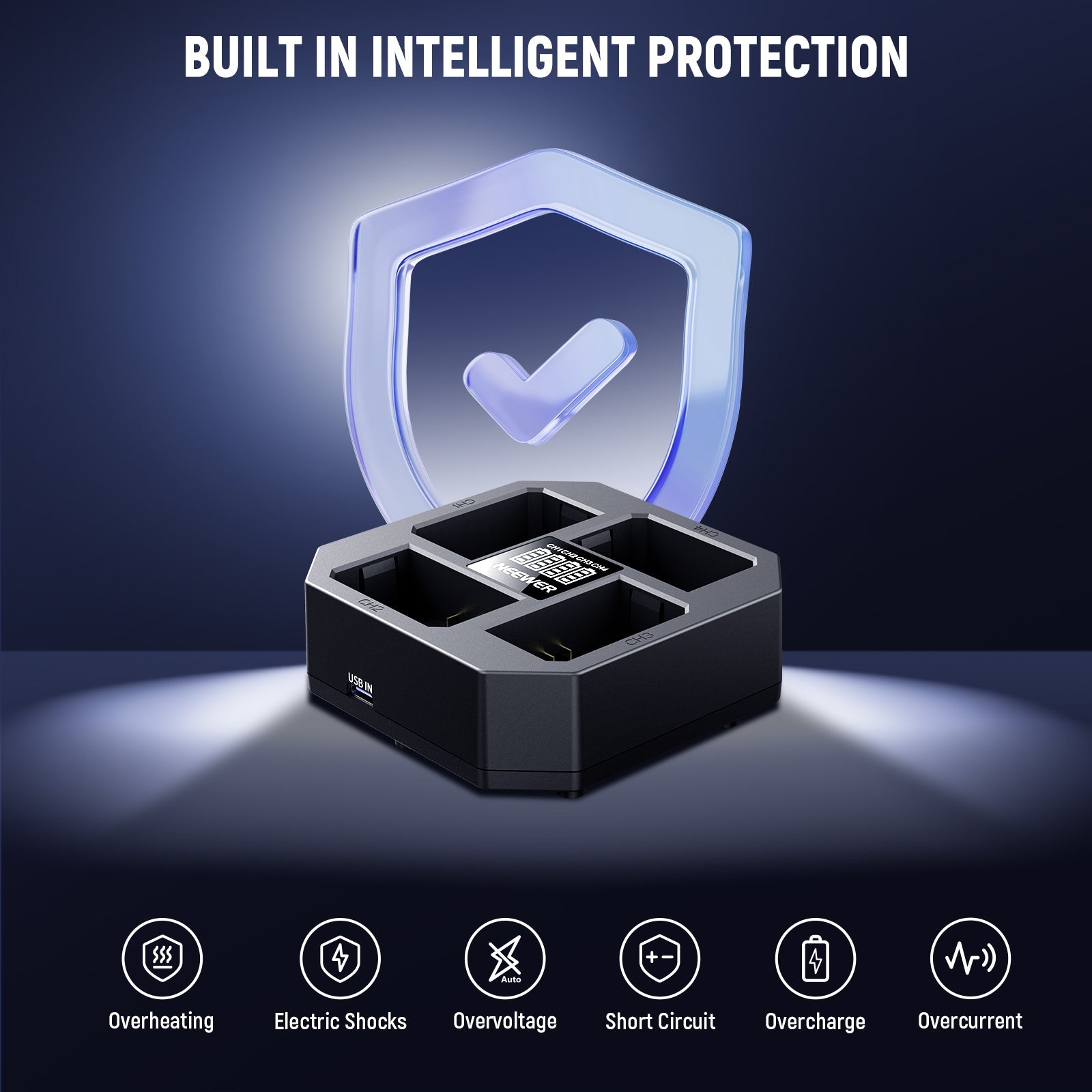 - Full Circuit Protection & Undervoltage Activation- All the 4 slots of the NP-FZ100 charging dock provides a rated output of 8.4V/1A. They use an advanced circuit to prevent short circuits and overcurrent and ensure safe charging. Additionally, the charger features an undervoltage activation function, which will lift the undervoltage protection on batteries that have entered sleep mode due to low voltage, so as to restore their full performance