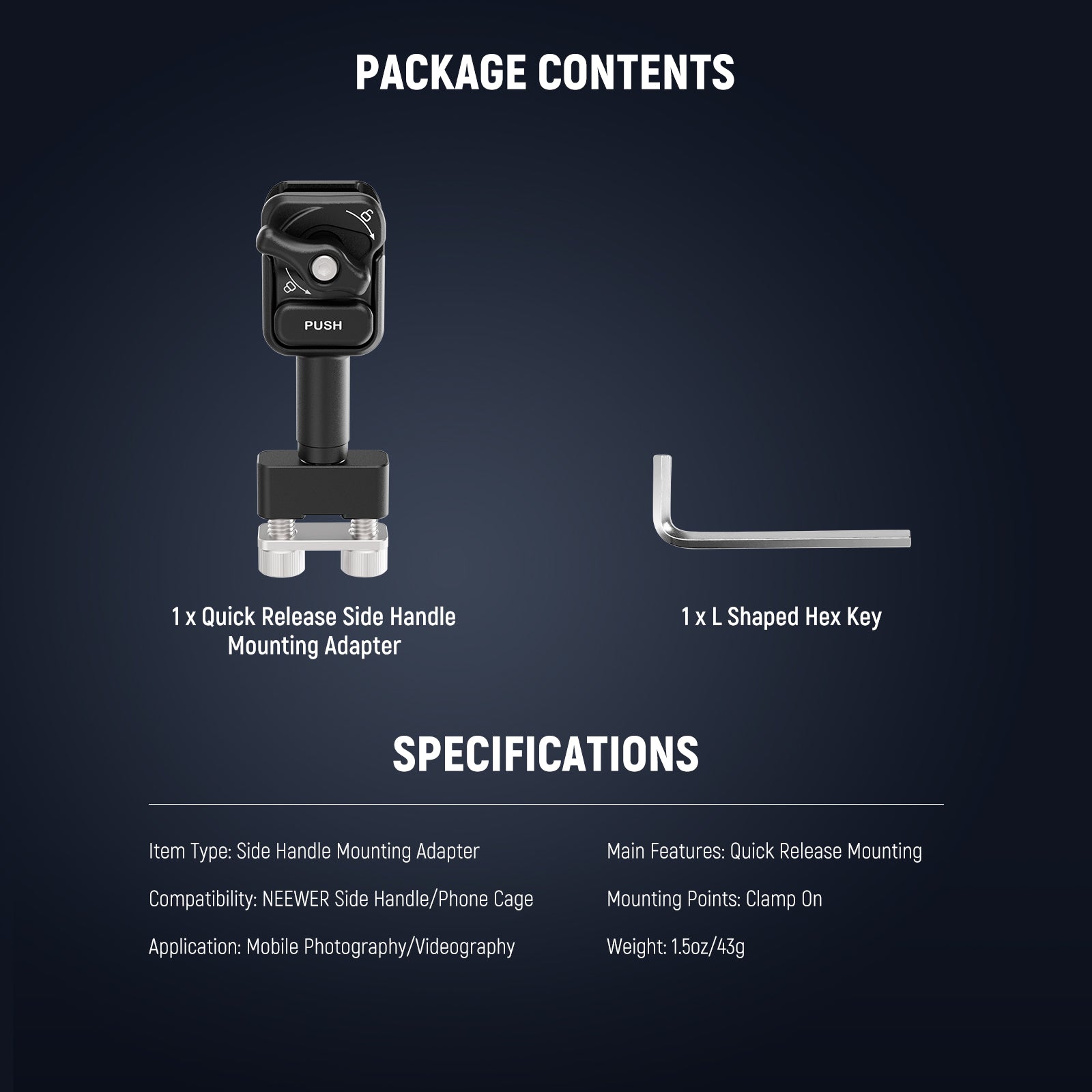 NEEWER PA071 Quick Release Side Handle Mounting Adapter for Phone Cage